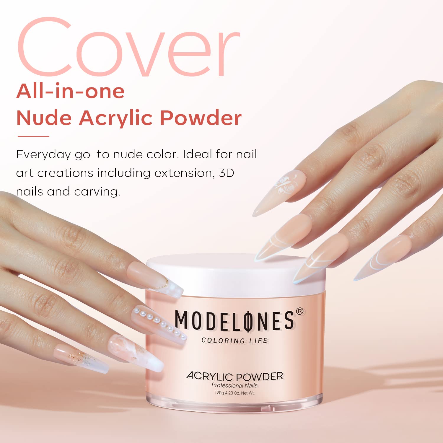 - 【Large Capacity & Multi-Purpose】: 4.23oz Cover Nude Acrylic Powder can be used as a base or an overlay for 25+ uses and mix up multi-colored powders to create your color style. Perfect for all nail DIY lovers who enjoy making acrylic nails, nail carving, french nails, or 3D nail art design.