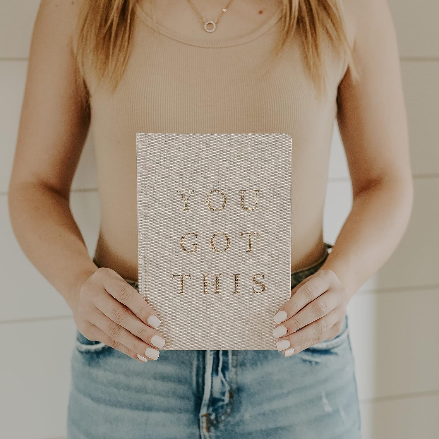 Sweet Water Decor Cute Motivational Lined Composition Notebook for Women, 100 Ruled Pages for Writing, Diary with Fabric Inspirational Cover (You Got This)