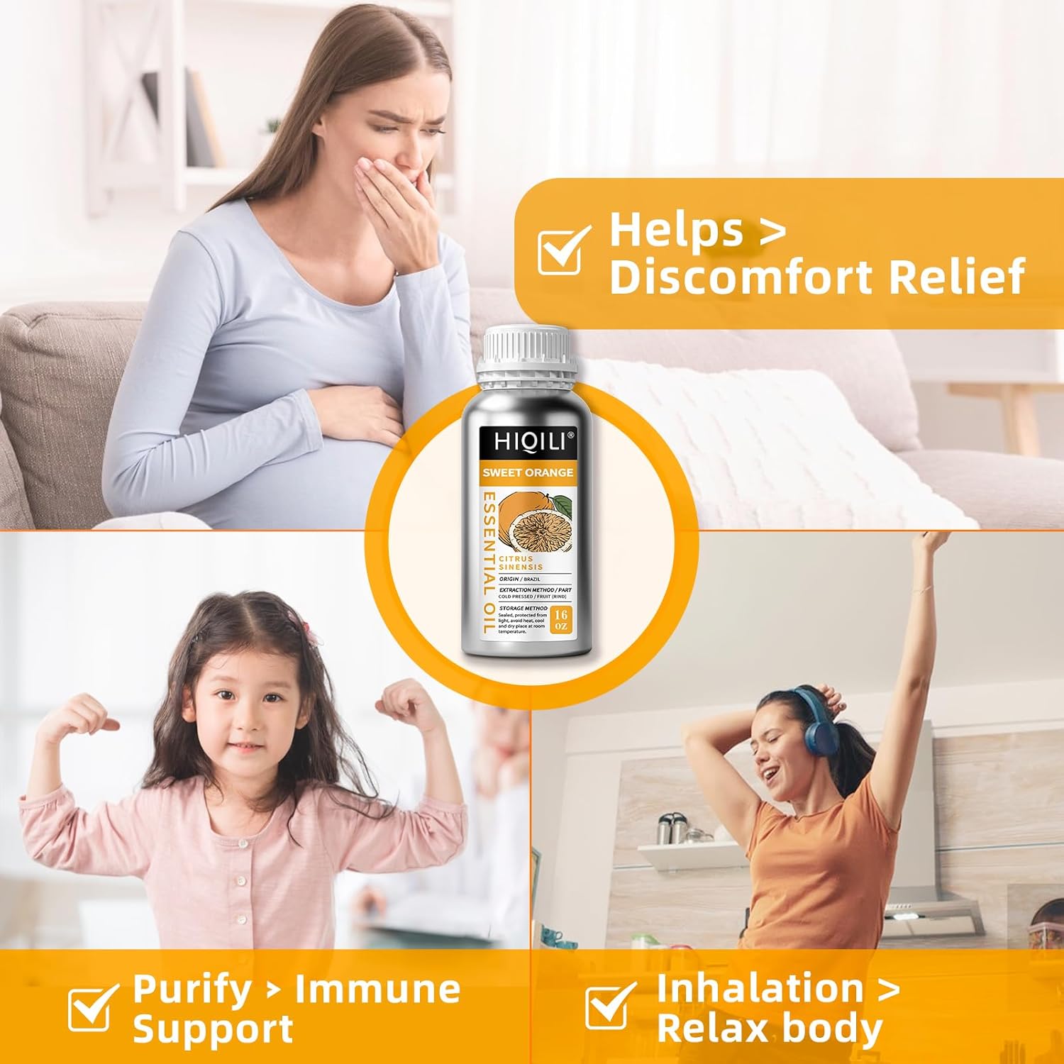 HIQILI 16 Fl Oz Orange Essential Oil, Pure and Natural for Diffuser, Skin - 500ML
