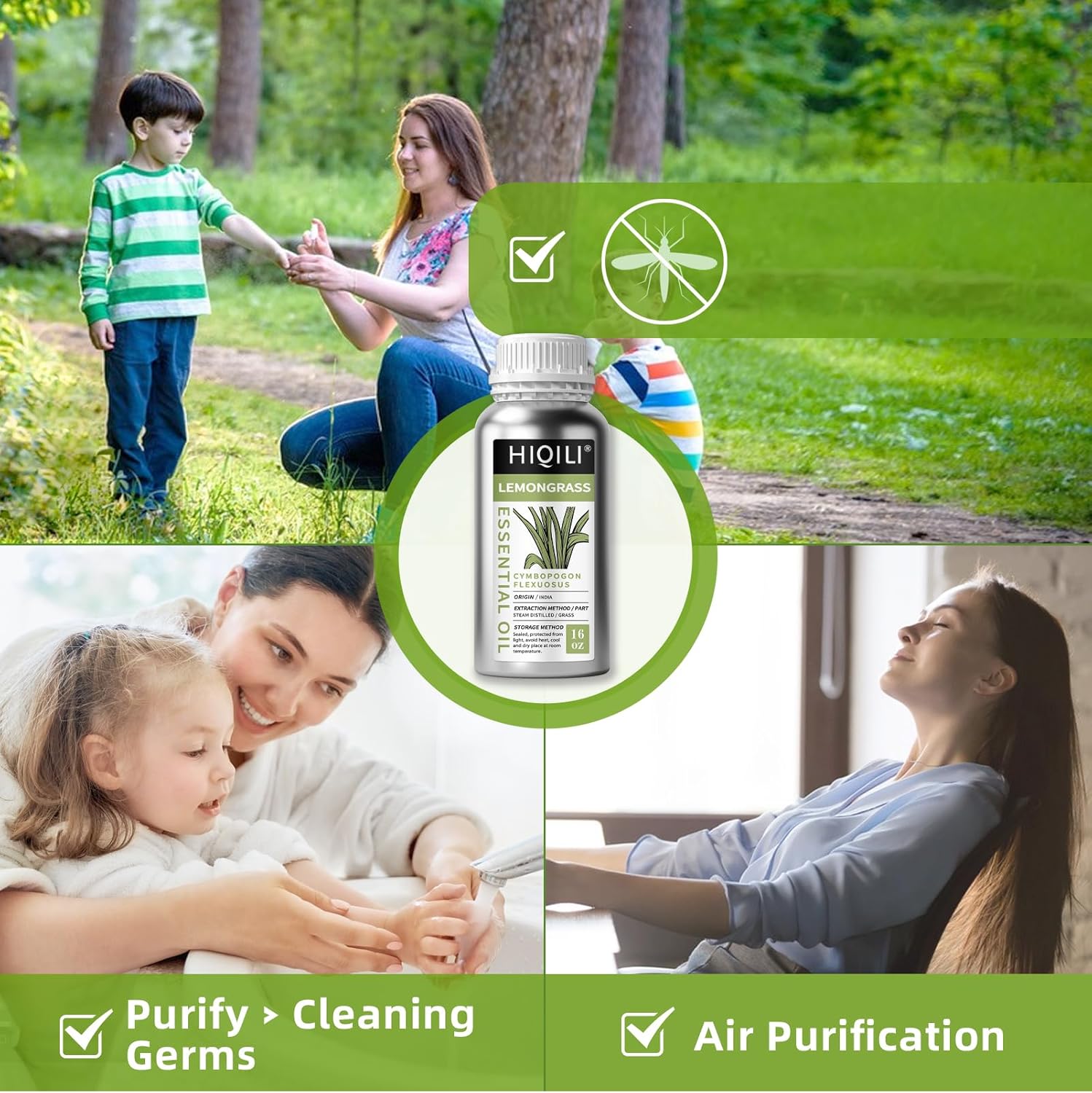 HIQILI 16 Fl Oz Lemongrass Essential Oil, 100% Pure Natural Undiluted for Diffuser, Hair