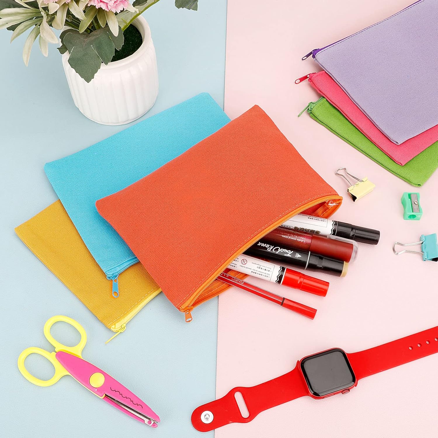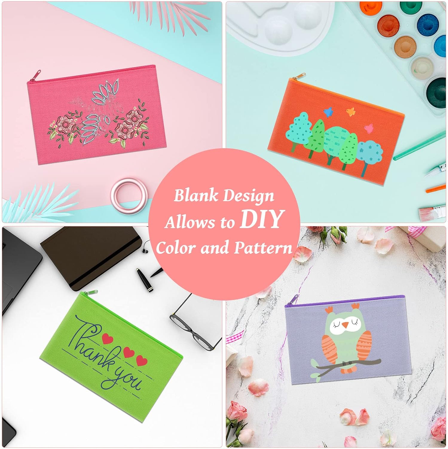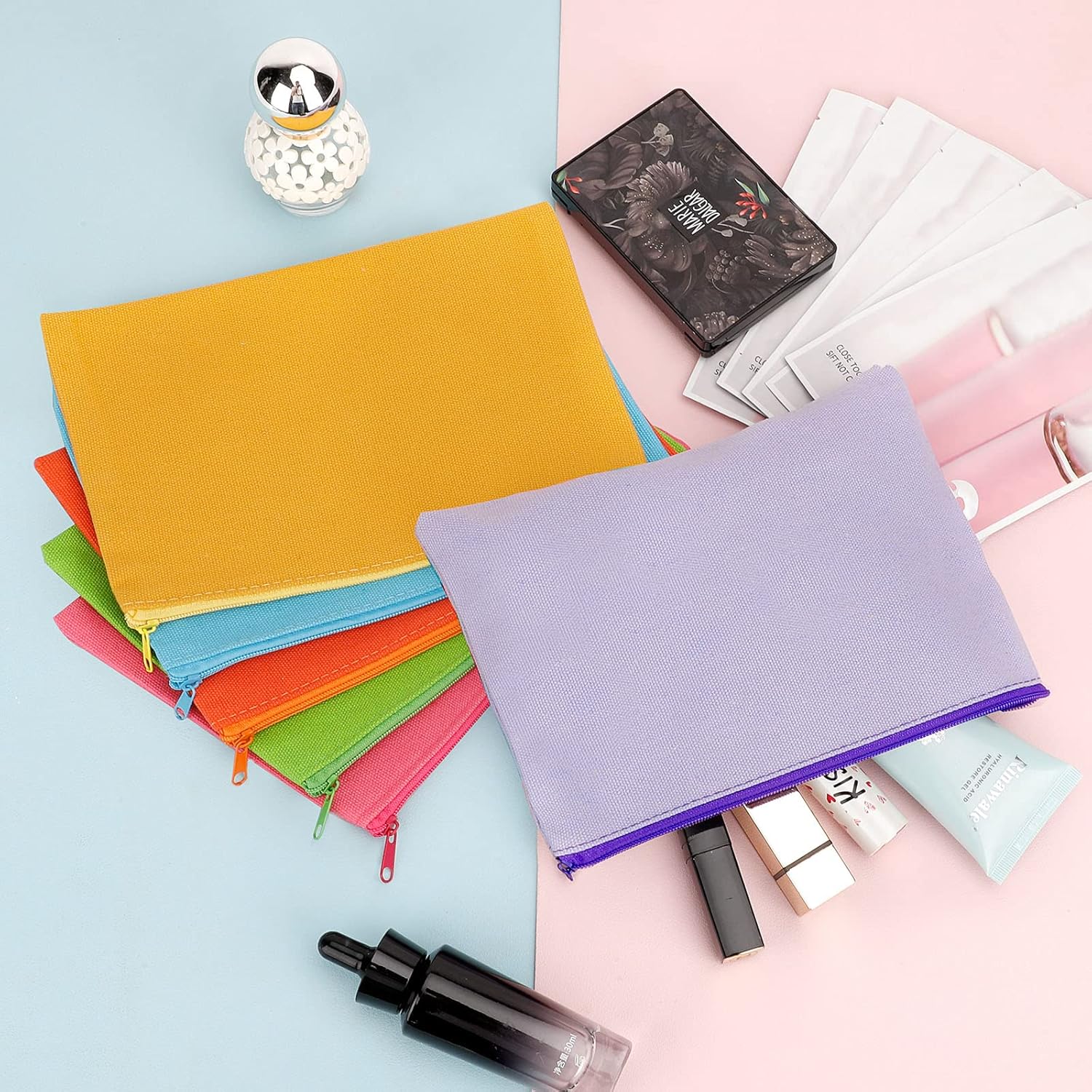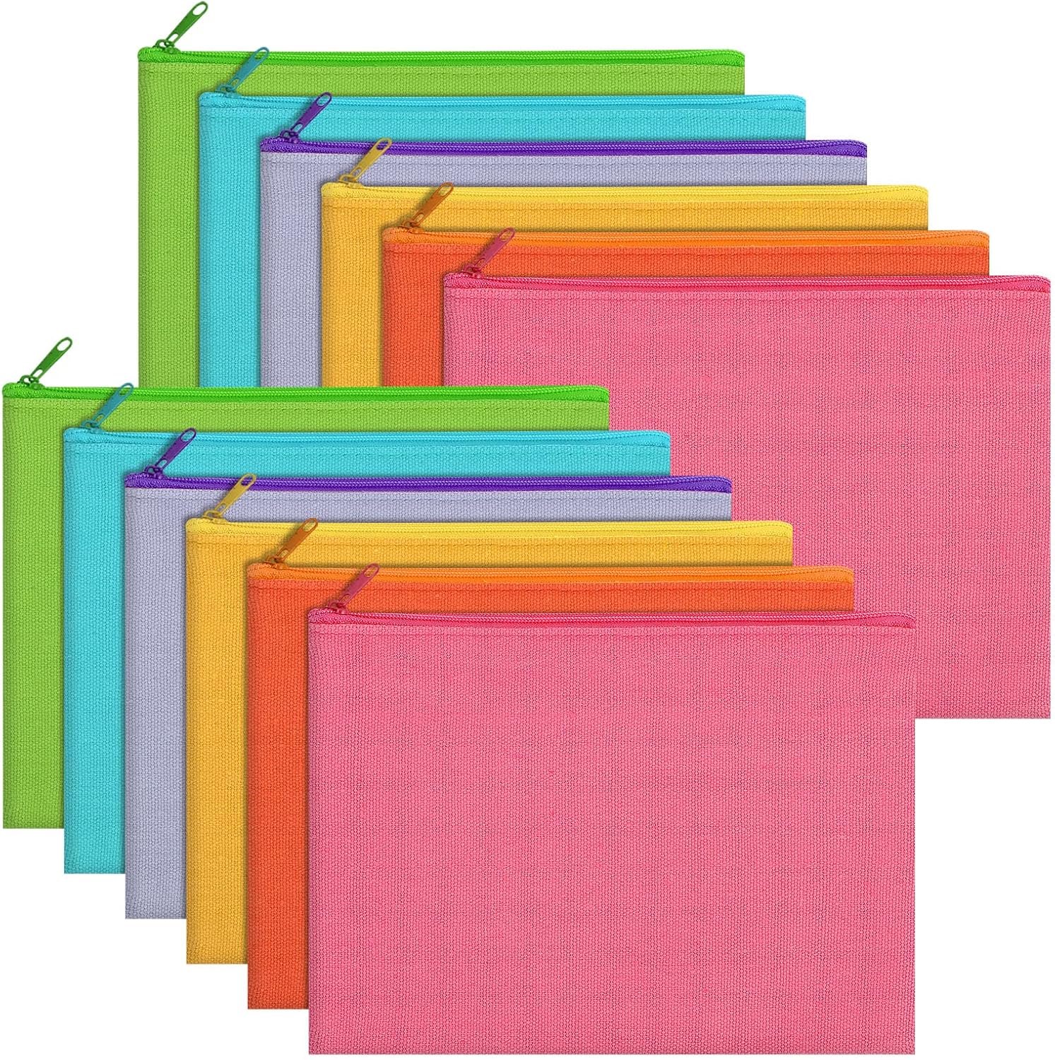 12 Pieces Cotton Canvas Makeup Bag, Multipurpose Cosmetic Bag with Zipper Travel Toiletry Pouch, Blank DIY Craft Bag (Multicolored B, L)