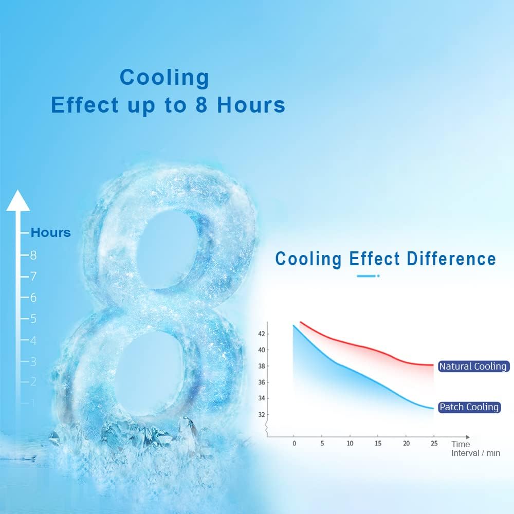 - 8 Hours Cooling Effect: Each of the cooling pad the effect last up to 8 hours. Physical cooling gel patch absorbs and disperses heat effectively rapidly cooling, slow down the symptoms. Relieve headache, toothache pain, drowsiness, fatigue, refreshing.