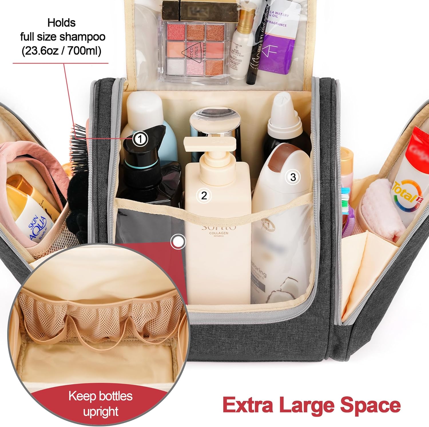 Hanging Toiletry Bag for Women & Men, Cruise Ship Travel Essentials, Holds Full Size Shampoo, with Dry and Wet Separation Cosmetic Bag, Makeup Organizer Bag, Bathroom Water-resistant Bag, Grey