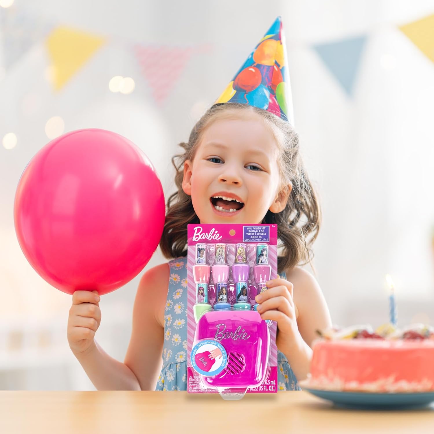 Townley Girl Barbie 8 Piece Nail Polish Set with Nail Dryer for Kids, Peel-Off Water-Based, Safe for Kids, Batteries Not Included, Ages 3 and Up