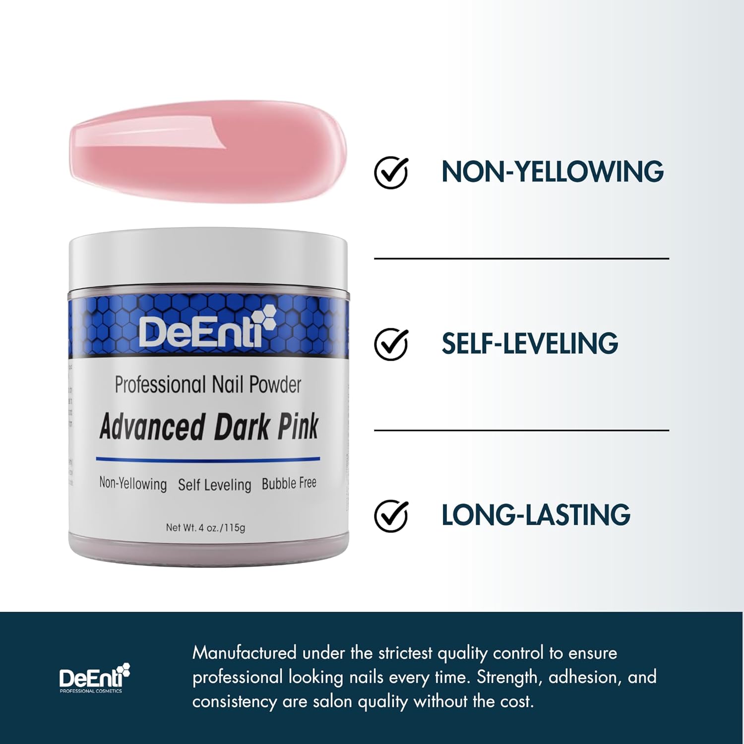 - PROFESSIONAL QUALITY NAIL POWDER polymer Dark Pink is dark pink in color with a standard set speed. Perfect for at home manicures, nail painting and gel polish, our gel powder dip is long-lasting, chip resistant and a perfect addition to your acrylic nail dip kit.