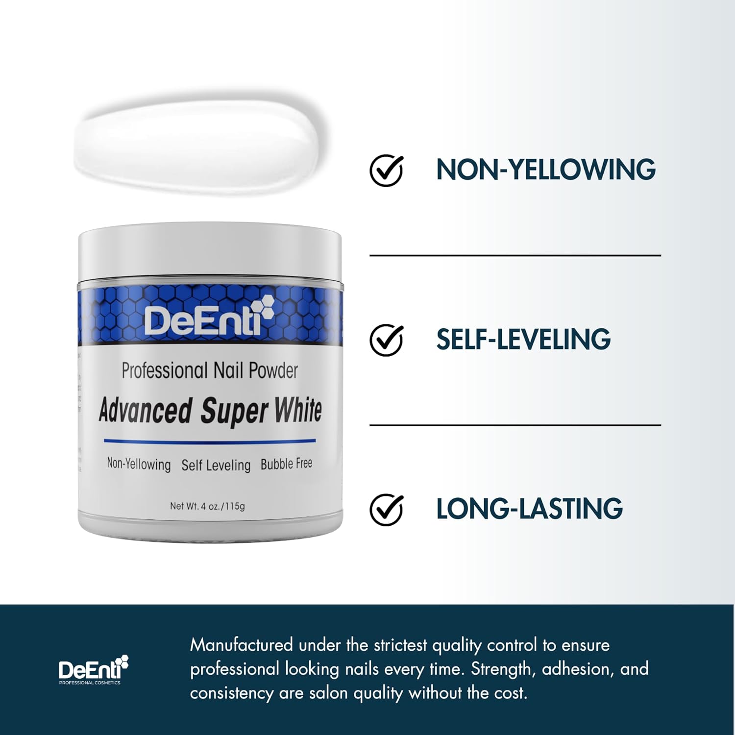 - PROFESSIONAL QUALITY NAIL POWDER polymer Super White is snow white in color with a standard set speed. Perfect for at home manicures, nail painting and gel polish, our gel powder dip is long-lasting, chip resistant and a perfect addition to your acrylic nail dip kit.