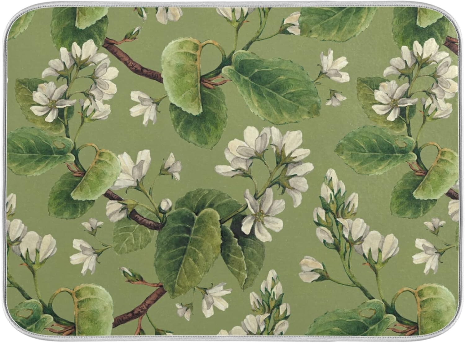 Dish Drying Mat for Kitchen Counter 18 x 16 Inch Vintage White Floral Green Leaves Microfiber Dish Mat Drying Pad Absorbent Dishes Pad Dish Drainer Rack Mats