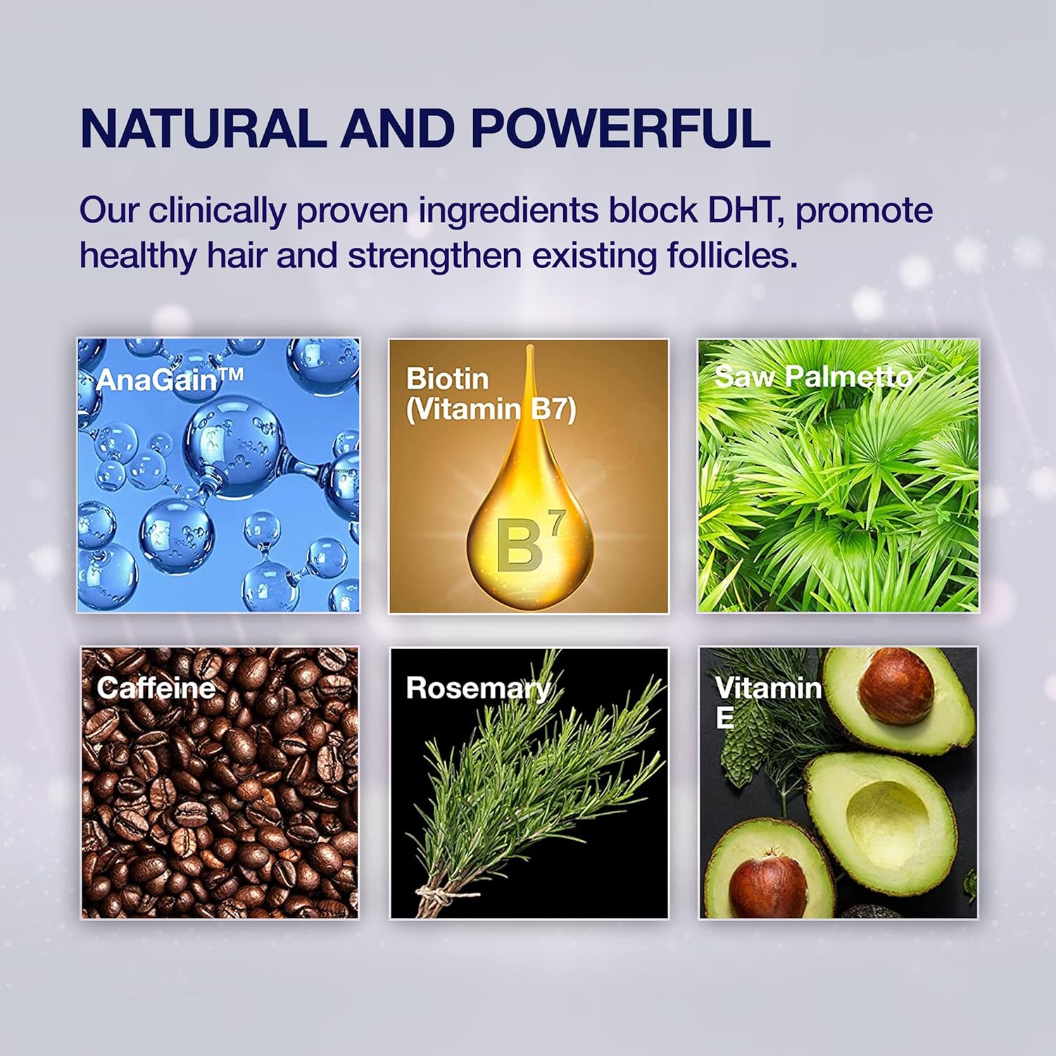 - POWERFUL PROVEN INGREDIENTS: DHT Blockers (including Saw Palmetto ) to reduce hair fall, hair thinning and loss. Biotin and Vitamin E for fuller, thicker, stronger hair, Caffeine to stimulate the scalp, Rosemary to speed up the process of cell turnover and growth and AnaGain to strengthen follicles and stimulate new hair growth. Fragrance-free. Sulfate-free. Paraben-free. Cruelty-Free. Suitable for Vegans. Hair serum for men made in the USA.