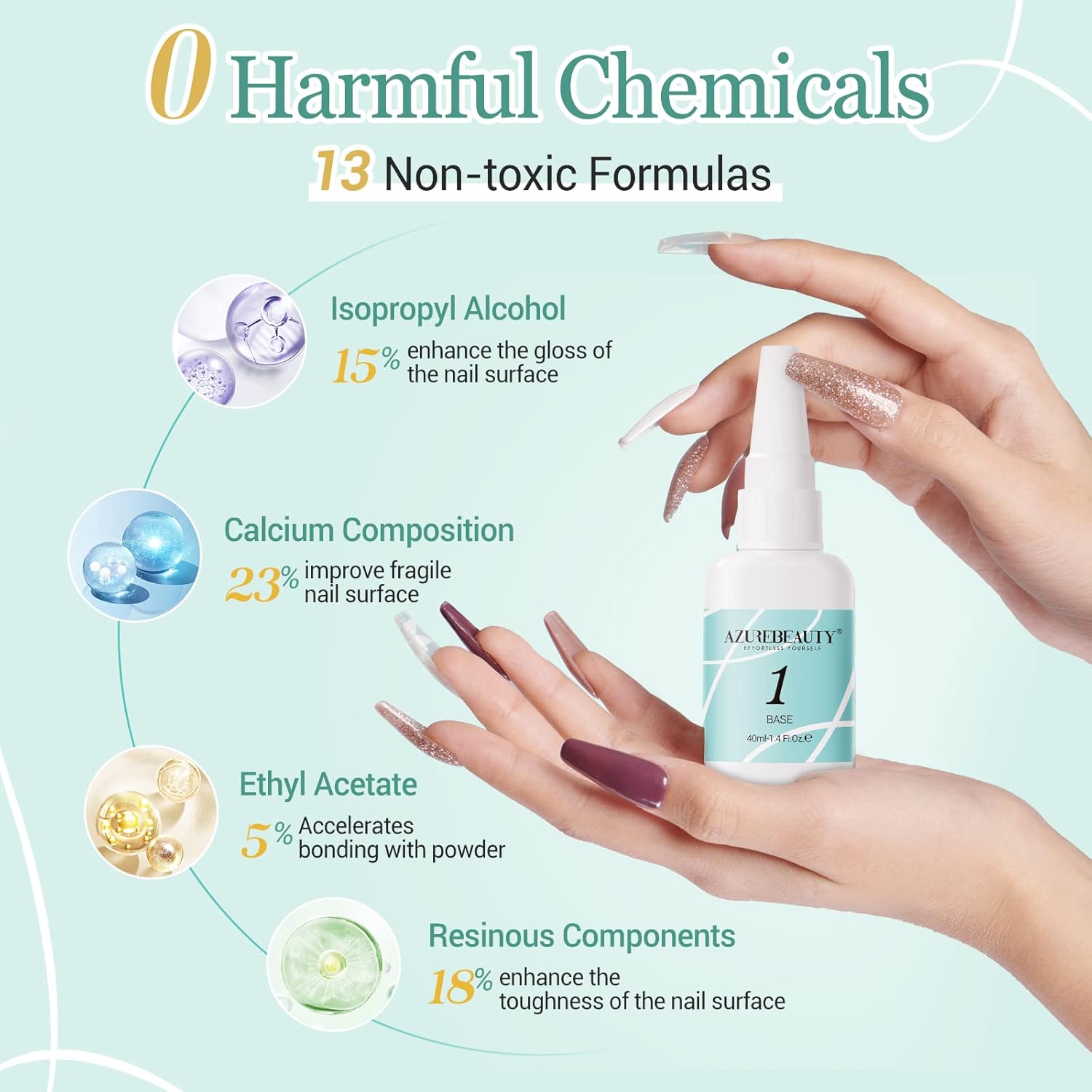 - β Long-Lasting and Easy to Use: AZUREBEAUTY dip powder base coat is anti-chipping, anti-peel off, breathable, does not damage the nail bed, doesn't need an LED nail lamp to cure, dries faster, and is skin-friendly. It can keep the nail art gorgeous and shiny for more than about 28 days if proper application