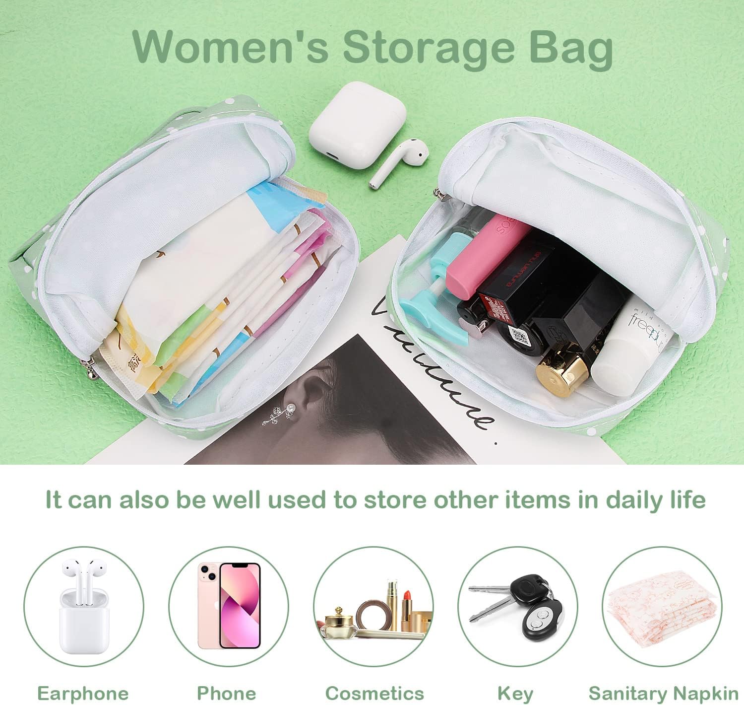- 💕 【Multifunctional Zipper Pouch】- Our women's storage bag can not only store feminine products but also store little items such as lip balms, lipsticks, cosmetics, mini mirrors, jewelry, keys, cash, credit cards, travel first aid stuff, etc.