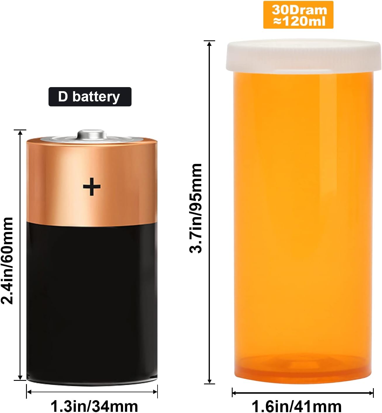 - Perfect Size: Each small plastic prescription vials measures approximately 1.6 x 3.7 inches (41 x 95 mm), 30 dram โ 120ml.
