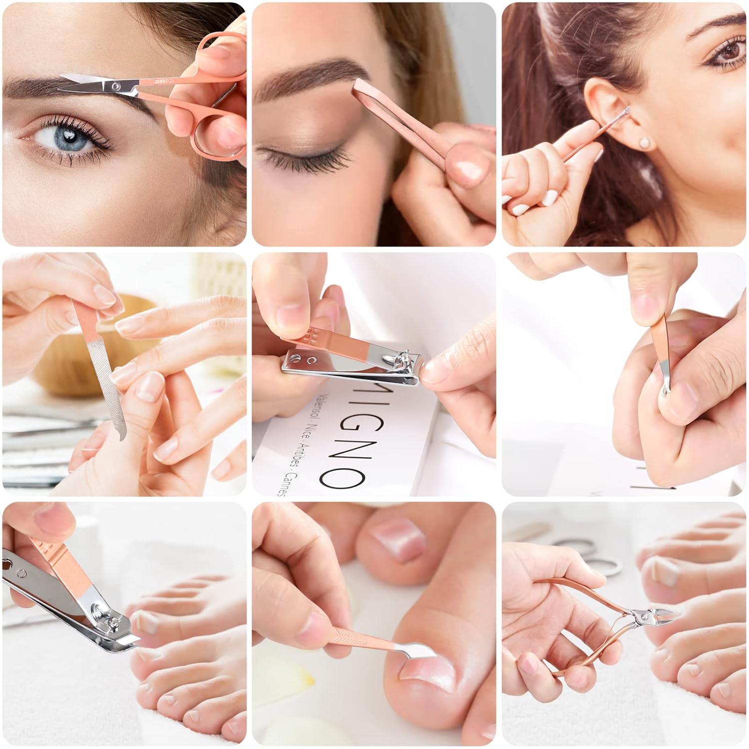 Manicure Set Pedicure Kit Womens Nail Clippers Set 32 in 1 Professional Grooming Care Tools Nail Kit Including Facial, Fingernails and Toenails Care with Travel Case Women (Rose Pink_32 in 1)
