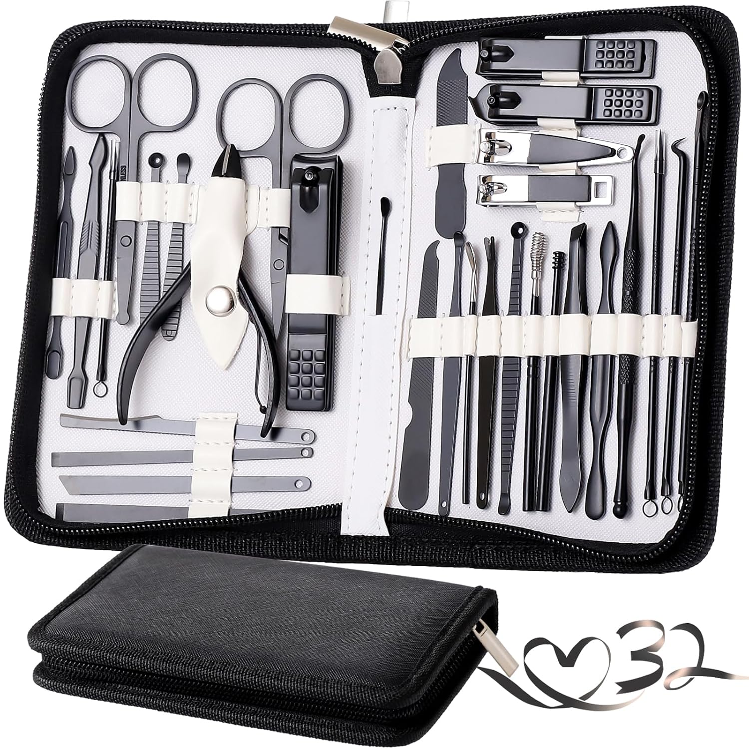 - 【32 PIECES MANICURE SET 】QLNEYSH Manicure and pedicure kit 32 in 1 is professional grooming care tools set Contains facials care, nail care, foot and toenail care tools. Daily use for men and women.