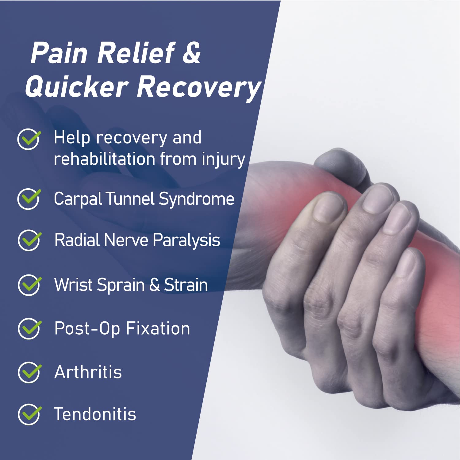 - ✅ 【INSTANT PAIN RELIEF & FAST RECOVERY】: Comforband Deluxe wrist brace perfectly conforms to and supports your weak or injured wrist joint, keeps your wrist in safe and neutral position, gives you instant pain relief when you typing, gaming, sleeping, and doing many other daily activities. Our wrist brace is suitable for Carpal Tunnel Syndrome, fracture, wrist soft tissue injury, paralysis of radial nerve, wrist sprain/strain, arthritis, tendonitis, tenosynovitis, and after post-operative cast or splint removal.