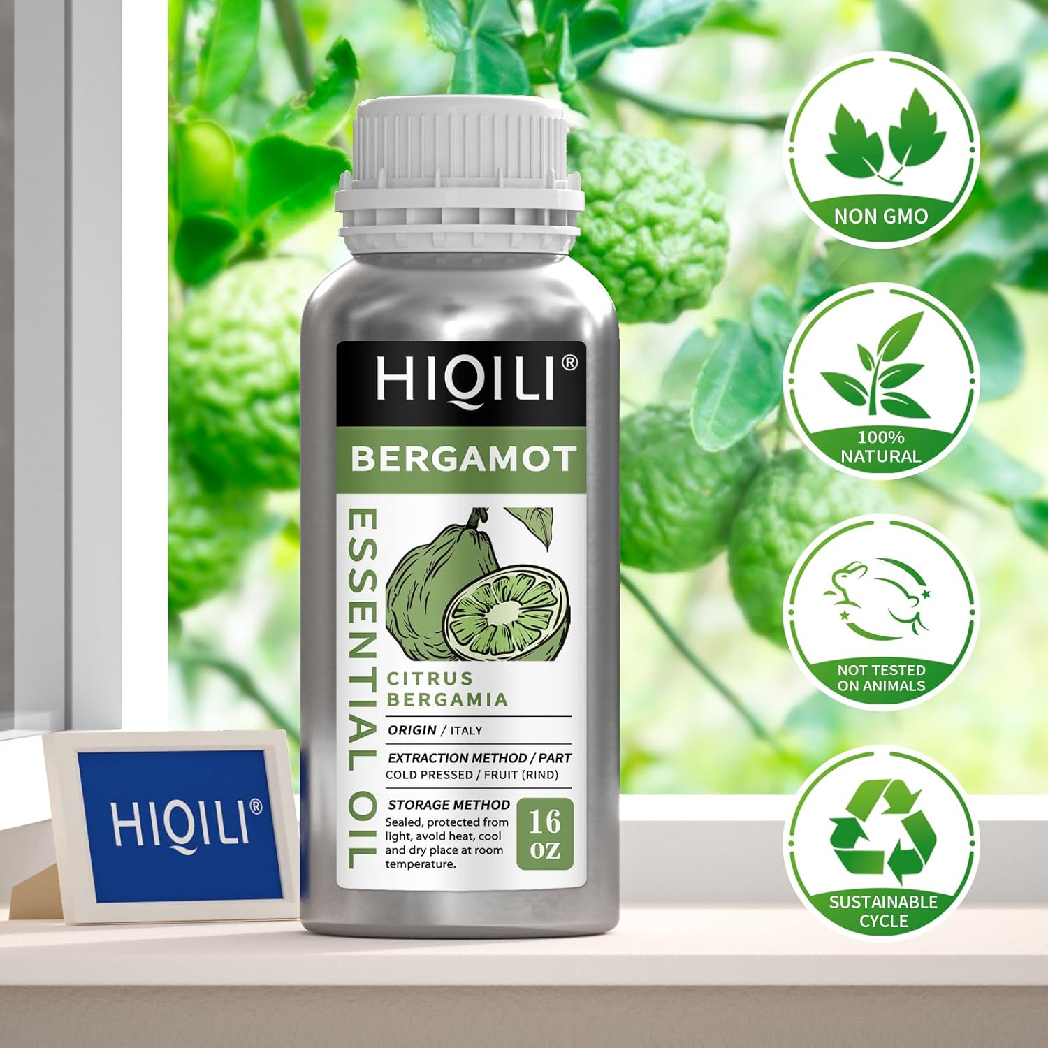 HIQILI Bergamot Essential Oil for Diffuser, Skin, Hair, DIY, 100% Pure & Natural - 16 Fl Oz (500 mL)