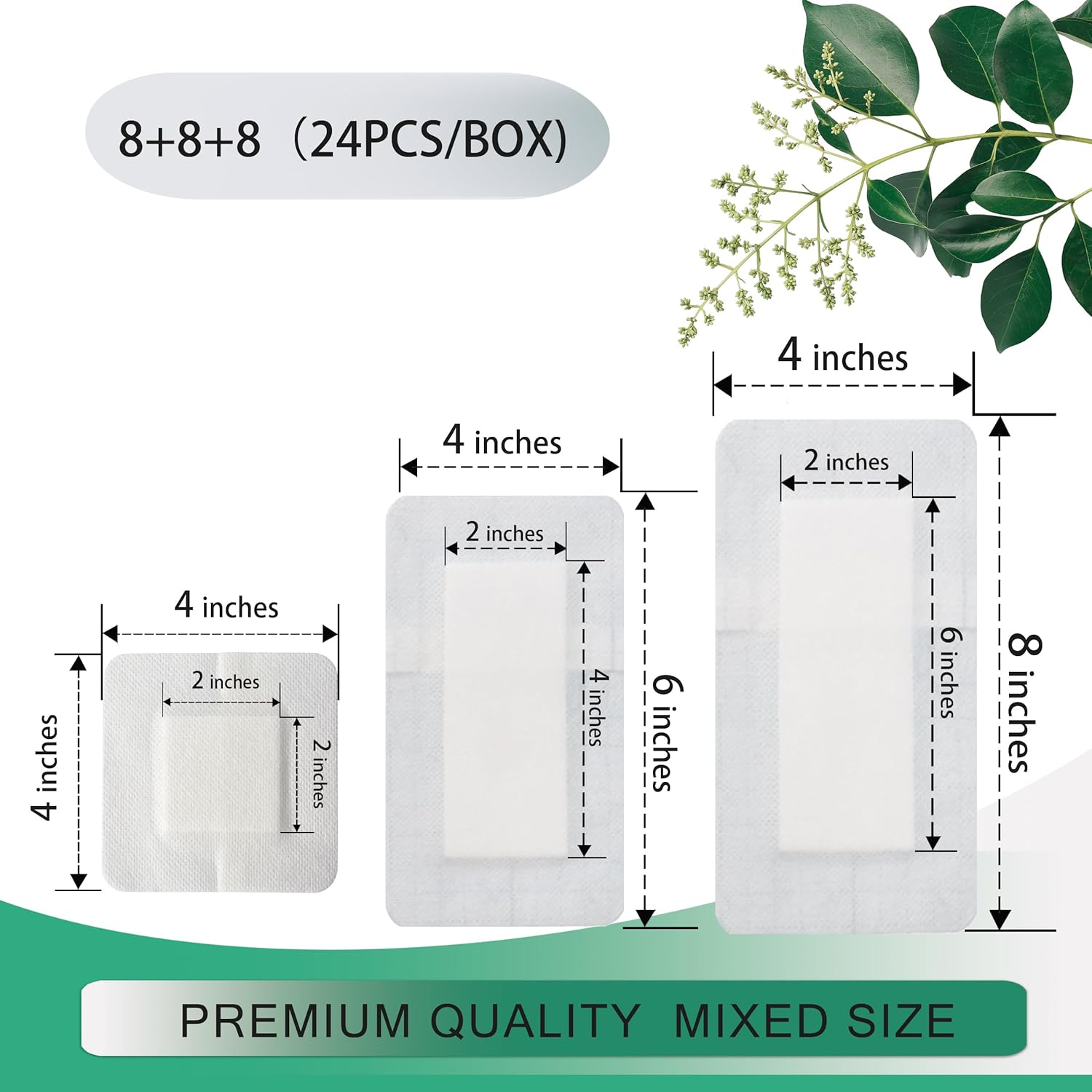 - Each piece is individually sterile packaged, 4"x4"-8pcs, 4"x6"-8pcs, 4"x8"-8pcs, total 24 pcs per box