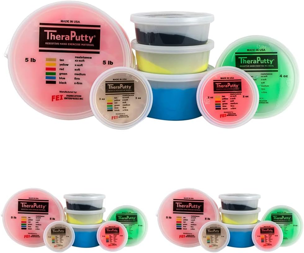 - SIX DIFFERENT FIRMNESS LEVELS - Regardless of your hand strength, there is a TheraPutty option for you! TheraPutty is available in 6 color-coded firmness levels ranging from xx-soft (tan) to x-firm (black).