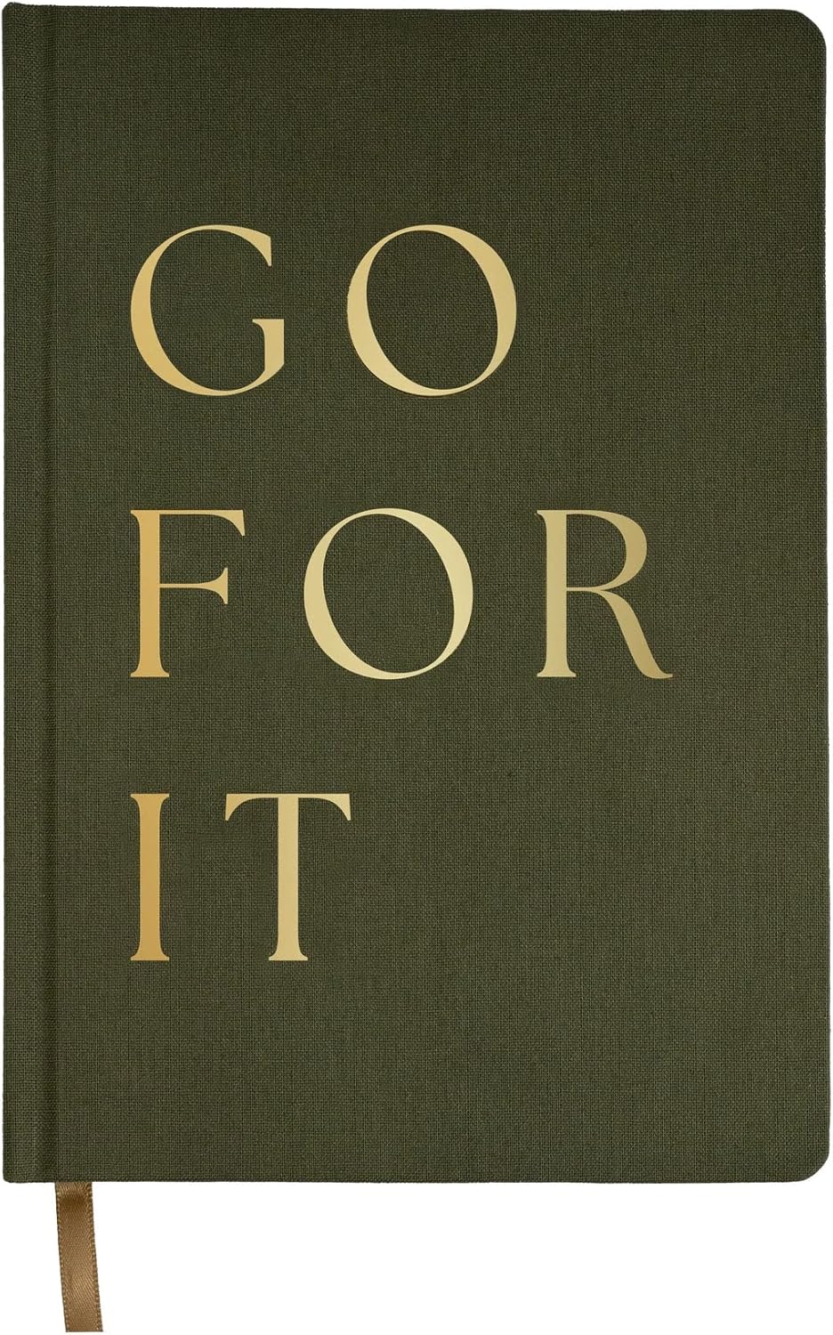 Sweet Water Decor Cute Motivational Lined Composition Notebook for Women, 100 Ruled Pages for Writing, Diary with Fabric Inspirational Olive Cover (Go For It)