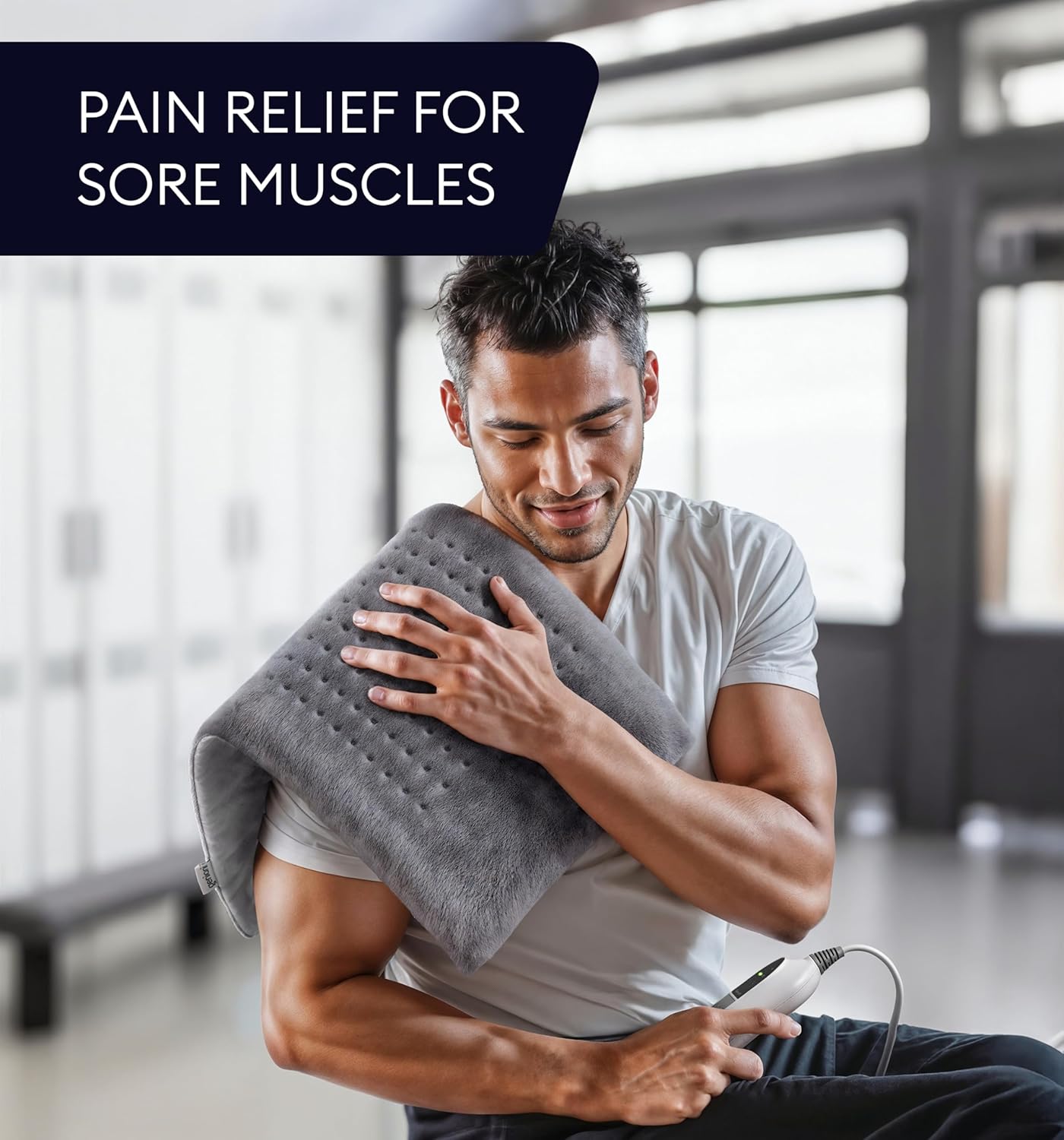 - β WORKS LIKE MAGIC ON SORE MUSCLES: Heating pad for back pain relief delivers a stream of heat to the affected area, eases back pain, unbearable cramps, and provides pleasant muscle relaxation