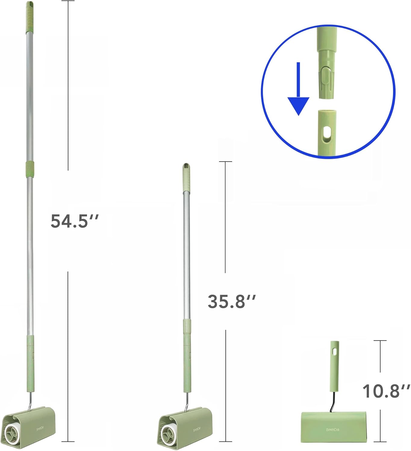 - ADJUSTABLE EXTENDABLE HANDLE: This heavy-duty lint roller extends from 11" (bed/couch) to 55" (floor cleaning), with 3 fixed positions (11", 36", 55") for optimal control across all surfaces.