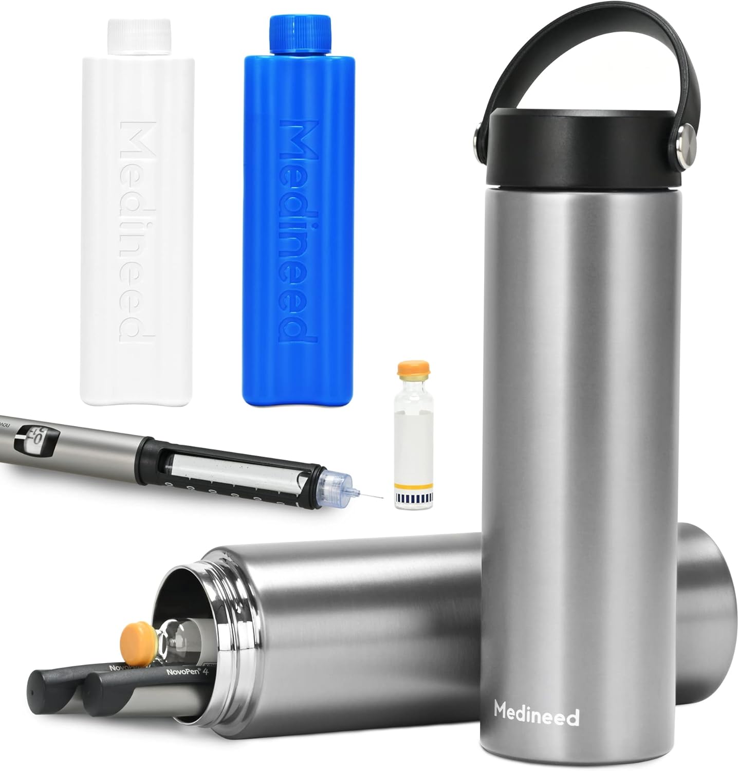 - GOOD COOLING: MEDINEED insulin cooler travel case solve the problem of refrigerating medications on the go; Biogel ice pack has great cooling capacity, even if at an ambient temperature of 105β, ensuring that insulin would keep the temperature at 36-45β for 28 hours