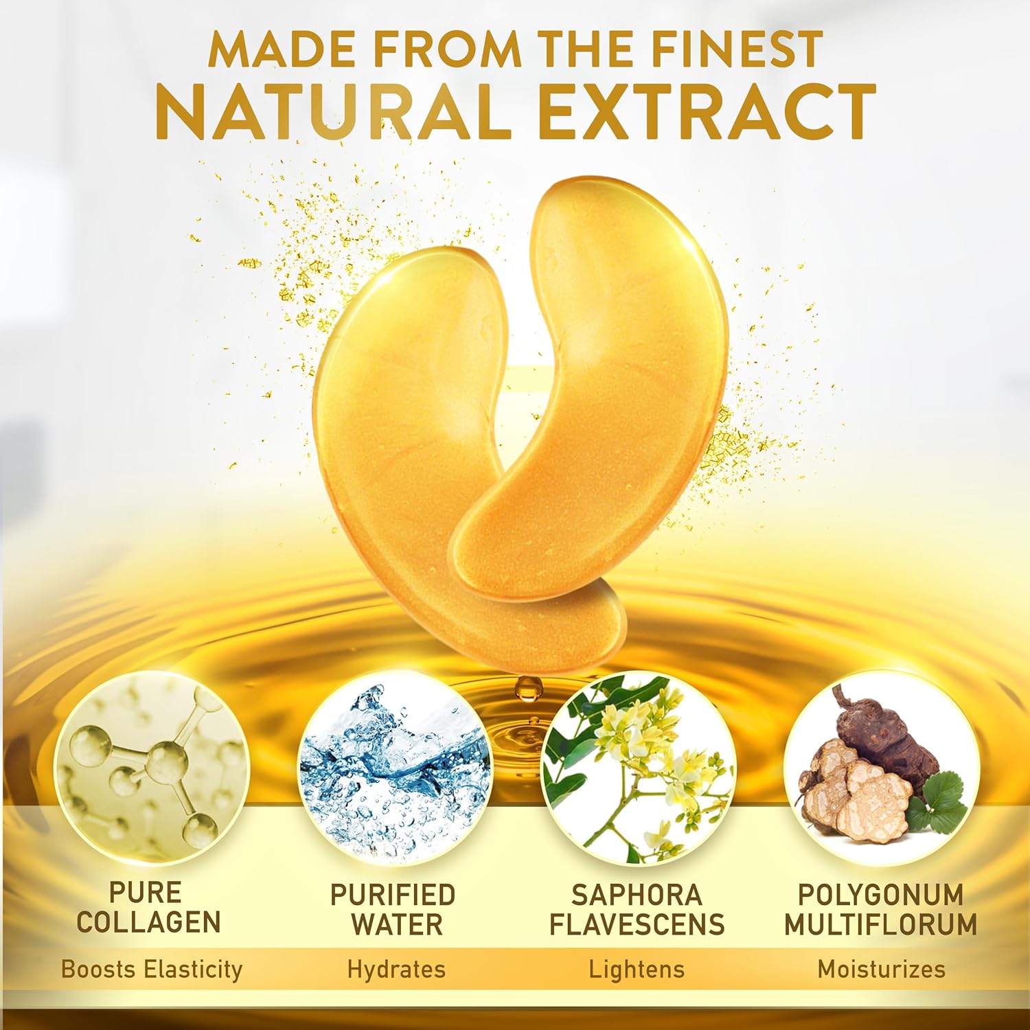 - PREMIUM FACE MASK SKINCARE: Our gold under eye patches and eye gel pads blend effectiveness with ease of use. Perfect for an at-home or travel eye bag treatment for women and men. These eye patches offer a relaxing, spa-like experience right in the comfort of your home.