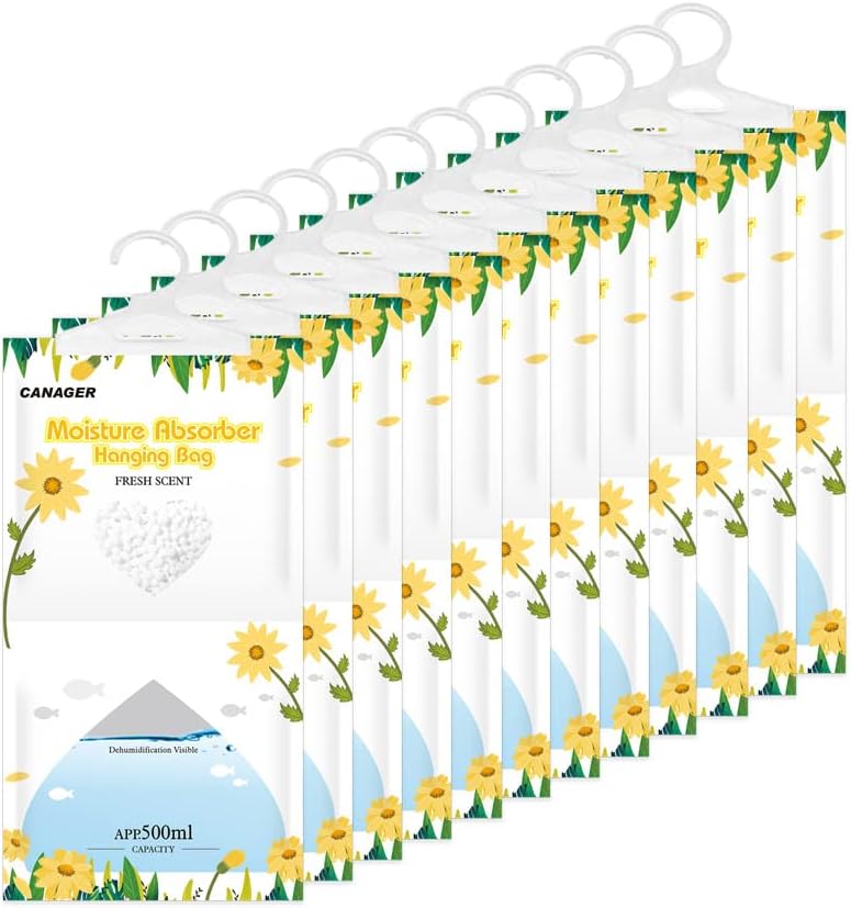 CANAGER Moisture Absorber -12 Pack,Fresh Scent Hanging Humidity Bag,Home,Car, and Closet Dehumidifiers(12.5OZ).