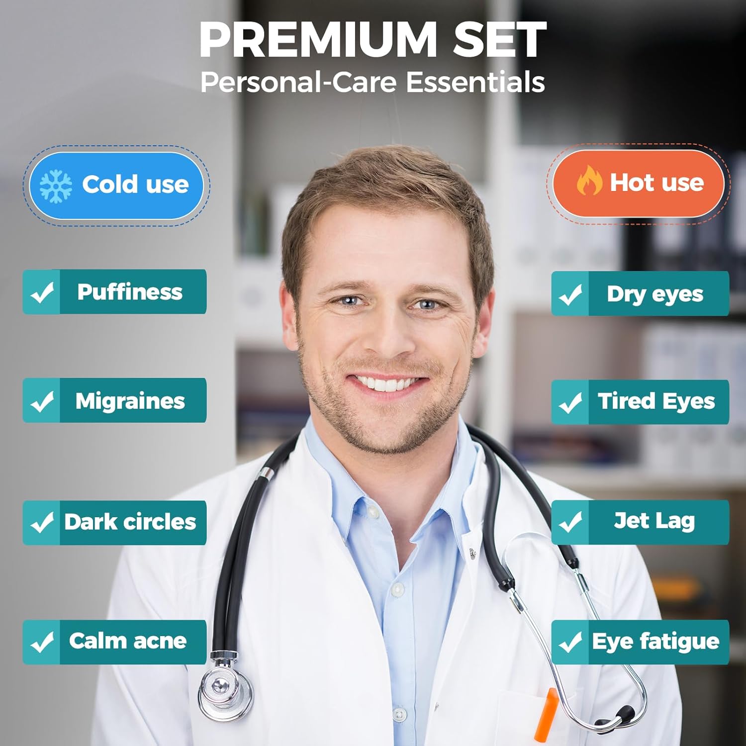 - โ๐ฅโใ6-in-1 ๐๐๐ฎ๐ฌ๐๐๐ฅ๐ ๐๐๐ฅ ๐ ๐๐๐ ๐๐ฒ๐ ๐๐๐ฌ๐ค SetใIncludes 1 x Ice Face Mask, 1 x Cooling Eye Mask, 1 x Cold Visible Eye Mask, 2 x Gel Under Eye Patches , 1 x Ice Pack, 1 x Storage Carry Bag. Cooling facial mask is widely used for home relax, office and travel . Unleashed yourself from the tension of the day, work pressure, business trip or jet lag, refresh your dizzy life. Sleep mask helps promoting sleep quality, you will feel relaxed and comfortable over the night till morning.