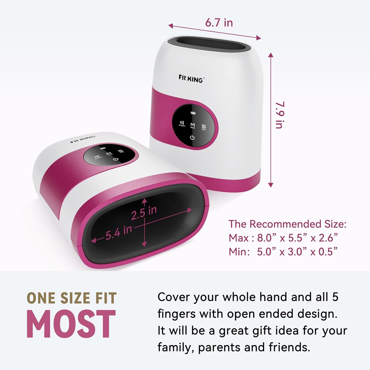 FIT KING Hand Massager with Heat for Hand Massage and Arthritis Carpal Tunnel Finger Numbness Relief - Cordless & Portable & Touch Screen - Birthday Gifts for Wife Mom Girlfriend