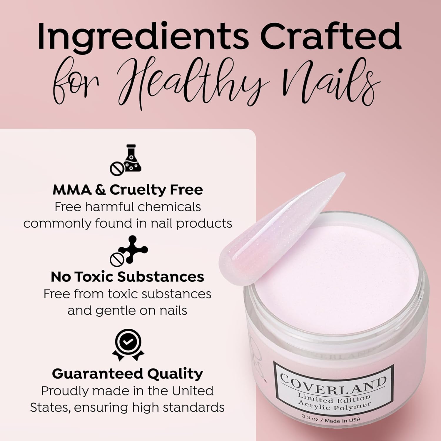- βοΈππππ ππππππππ πππππ: The flexibility and adhesion properties of Coverland colored acrylic nail powder make it easy to shape nails with precision, and offers nice control for professionals who prefer to work with a polymerization rate of moderate to fast.