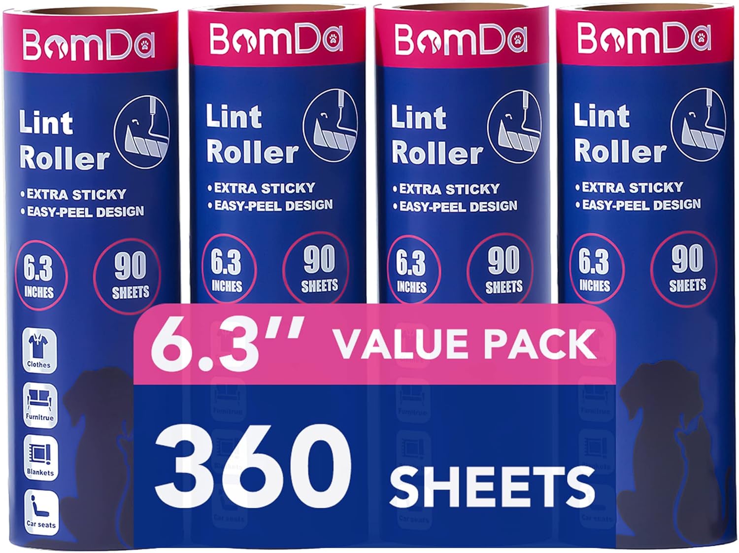 - MEGA VALUE SET : Your sticky lint roller includes 4 pack of 90 Sheets refills for a total of 360 sheets , 6.3inch/16cm Width.