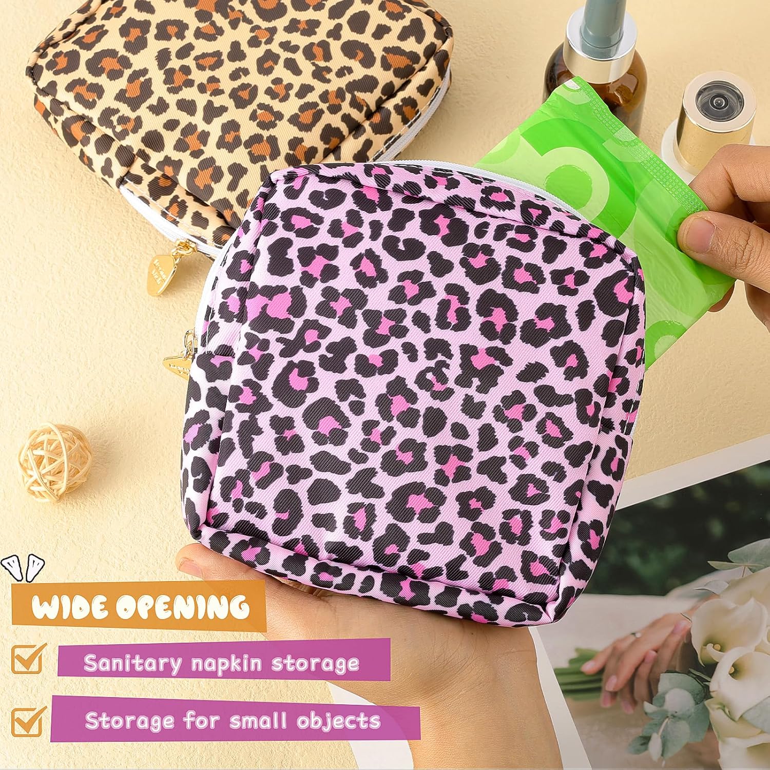 Desing Wish Sanitary Pad Storage Bag Portable Period Bag for Teen Pads/Sanitary Napkins/Small Tampons, Sanitary Napkin Storage Bag First Period Gifts for Teen Girls (Pink Leopard)