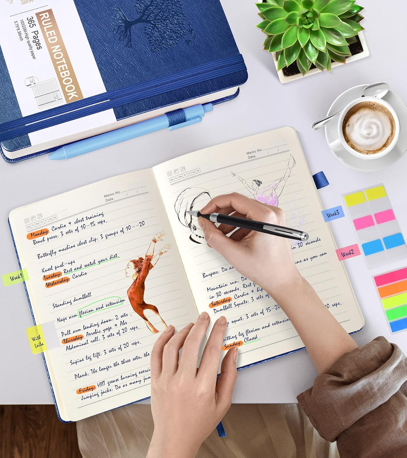 - Special Feature : Hard Cover, Elastic Closure Band, Bookmark Inner Storage Pocket, Index Tabs Stickers