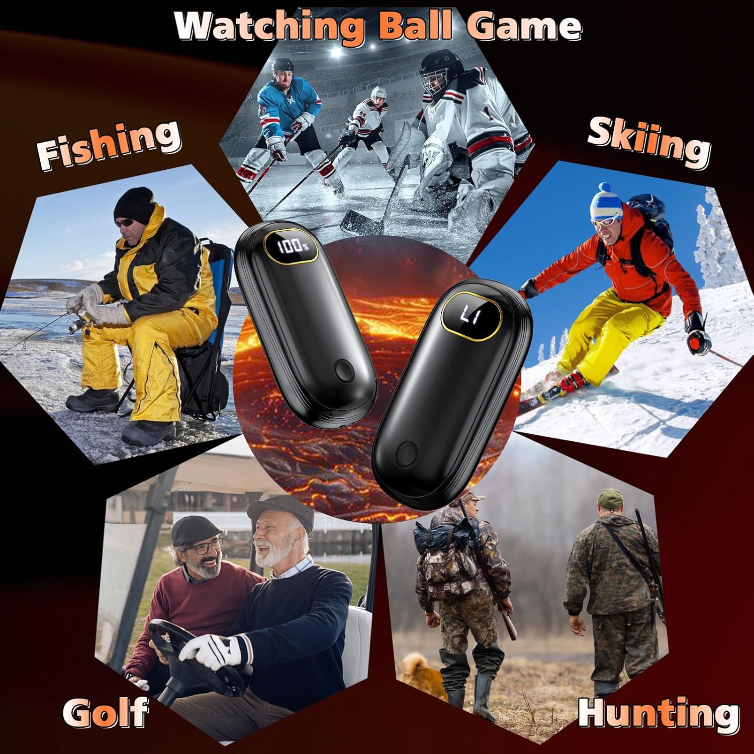 - 【Rechargeable Hand Warmer】 2-in-1 hand Warmers rechargeable designed with single-sided or dual-sided heating. Dual-sided heating delivers 360° warmth for your hands, while single-sided heating provides prolonged warmth. The portable pocket design is for gifting to family and friends. They keep your hands warm all day long while traveling, hunting, golfing, hiking, camping, skiing, working in the office, attending classes, or engaging in any outdoor activities during the cold winter!