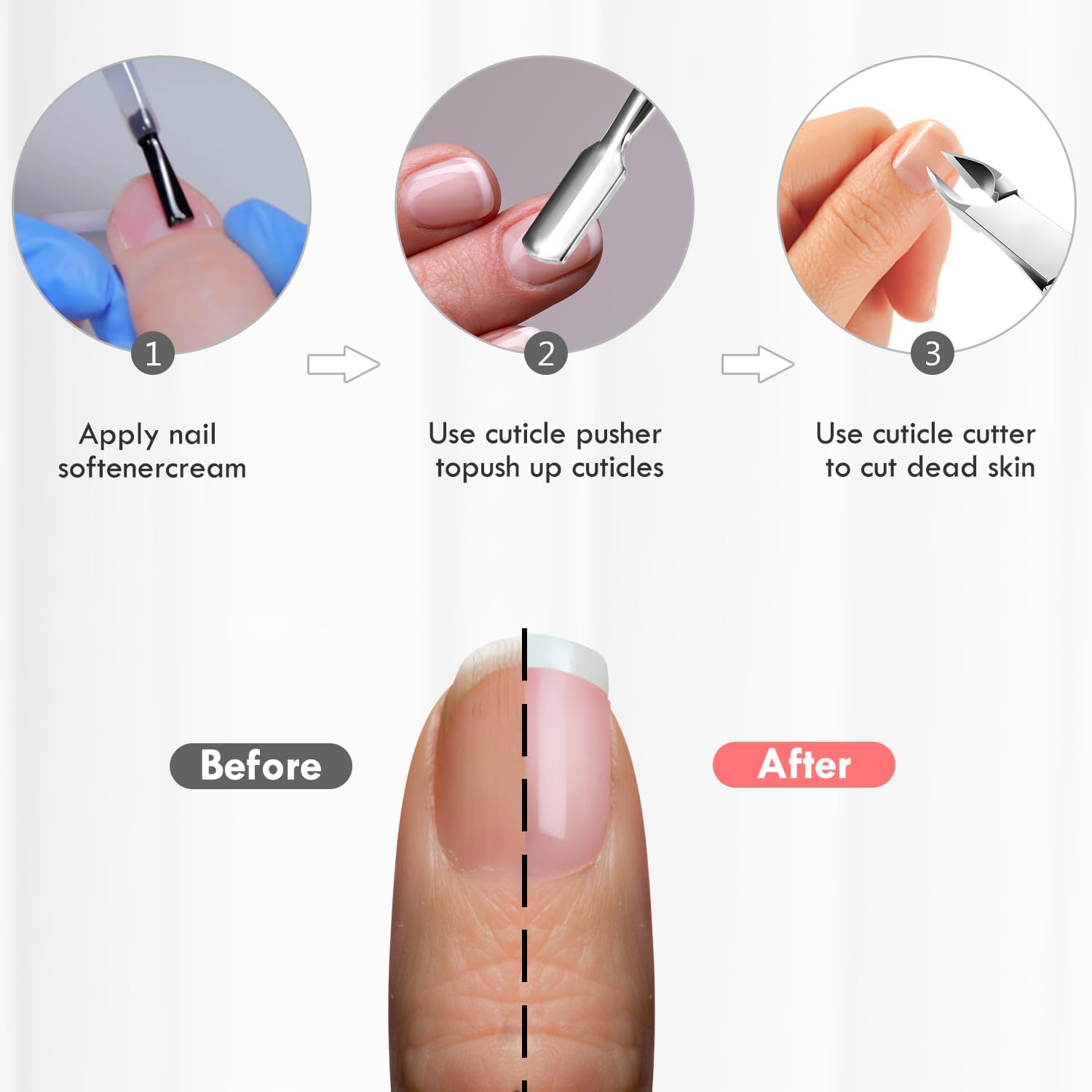 - Upgraded Polished Stainless Steel Materal -- The cuticle trimmer and cuticle pusher cutter are made of polished stainless steel, Which makes them sharper, more efficient and durable, easy to clean. They will give you a nice experience for a long time.