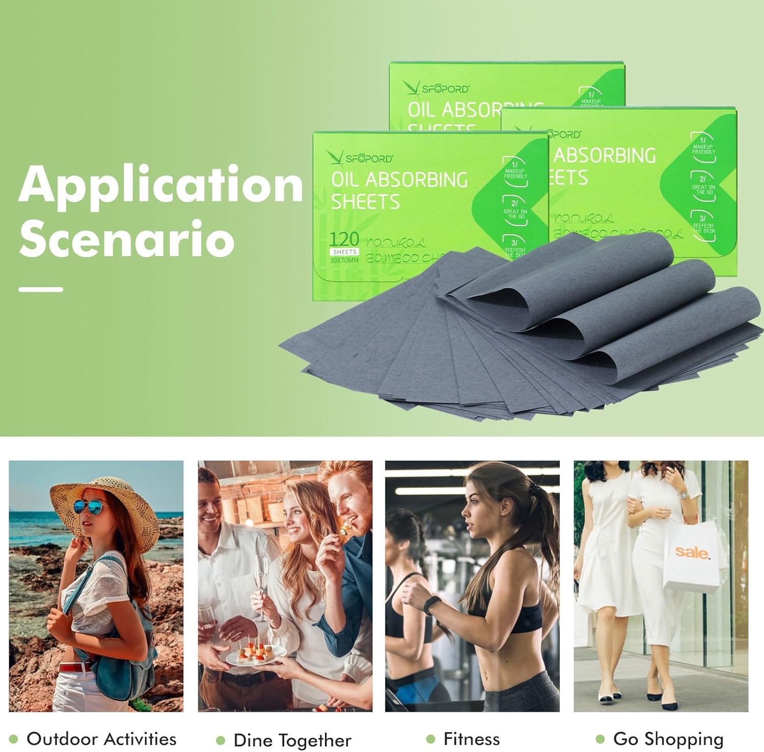 Oil Absorbing Sheets with Bamboo Charcoal - 2 Pack (240 sheets) Oil Blotting Sheets For Face, 20% More Makeup Friendly High-performance Handy Face Blotting Paper for Oily Skin
