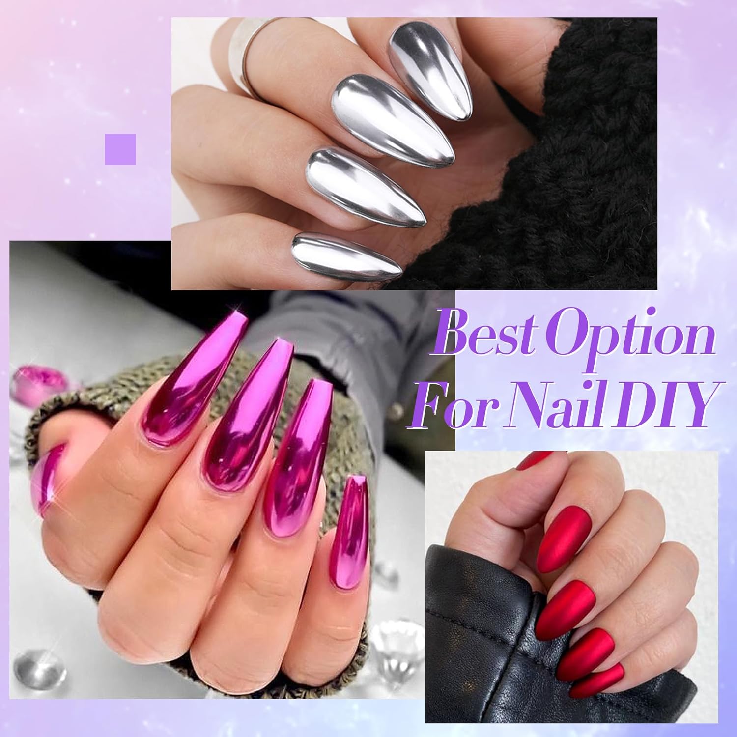 - Wide application: The colorful chameleon nail sequins are suitable to be applied to UV gel nails, acrylic nails, natural nails, etc., a useful DIY tool for nail design. Different nail polishes will give different real effects. Trying different nail polishes can also bring you more fun with chameleon flakes.