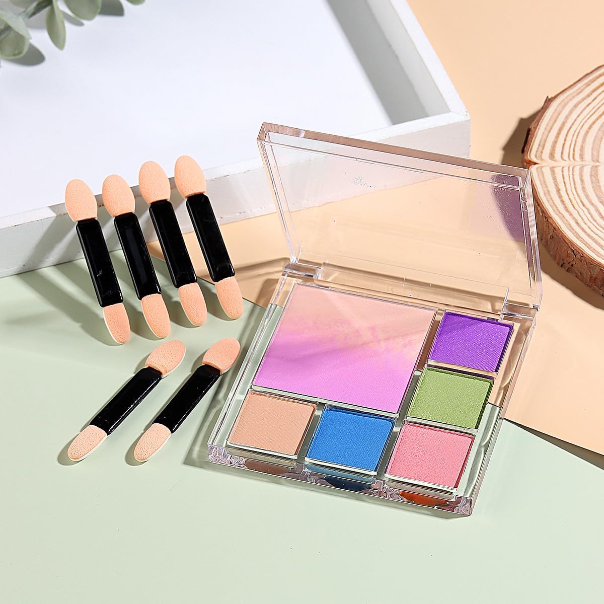 - 【YOU WILL GET】 7 colors in one palette solid nail powder and 6 doubled-head sponge sticks for rubbing nail pigment.