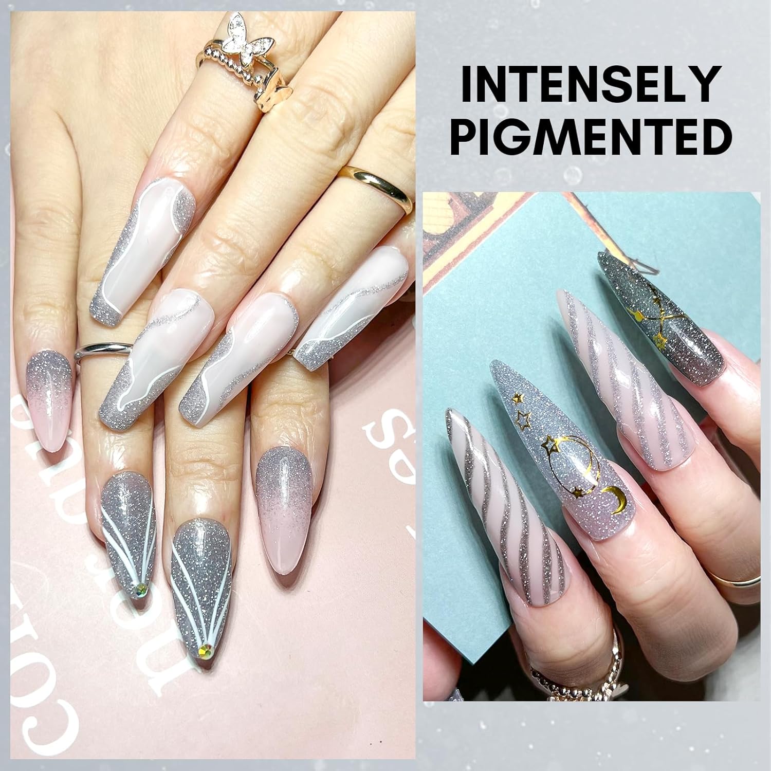 Makartt Glitter Gel Nail Polish - Flash Grey Diamond Reflective Sparkly Gel, UV LED Soak Off for Nail Art Designs, 15ml DIY Home Salon Manicure
