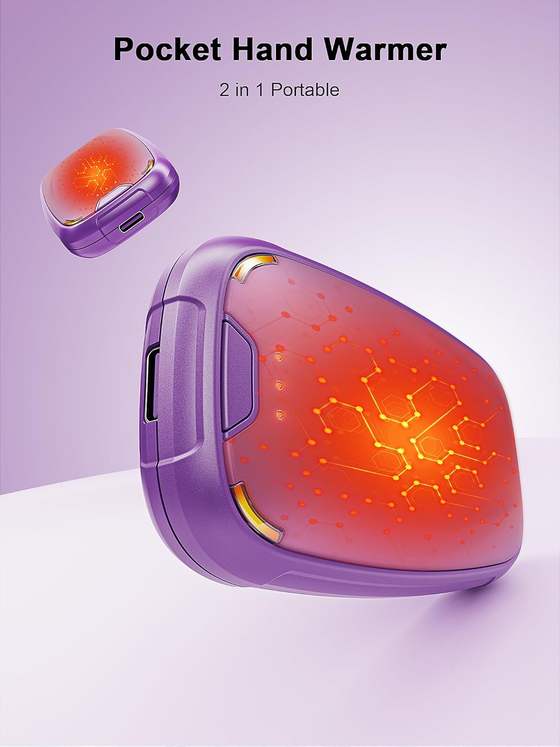 - 【2-in-1 Magnetic Design】This rechargeable hand warmers 2 pack is designed with magnetic attraction, it can be divided into two for independent heating, and portable hand warmer for easy storage. This pocket warmers has a unique shape and feels comfortable to use. Use it as a camping hand warmers and share it with your friends and family.