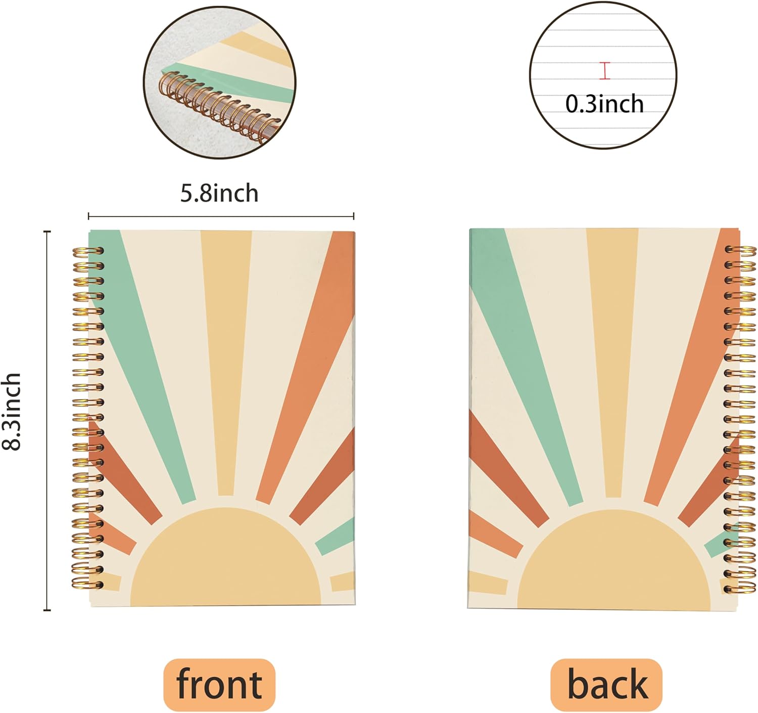 VNWEK Vintage Boho Notebook - Boho Journal, Boho Gifts for Women, Boho Office Supplies, Boho Sun Sunshine Spiral Notebook 5.5x8.3,Writing Notebooks