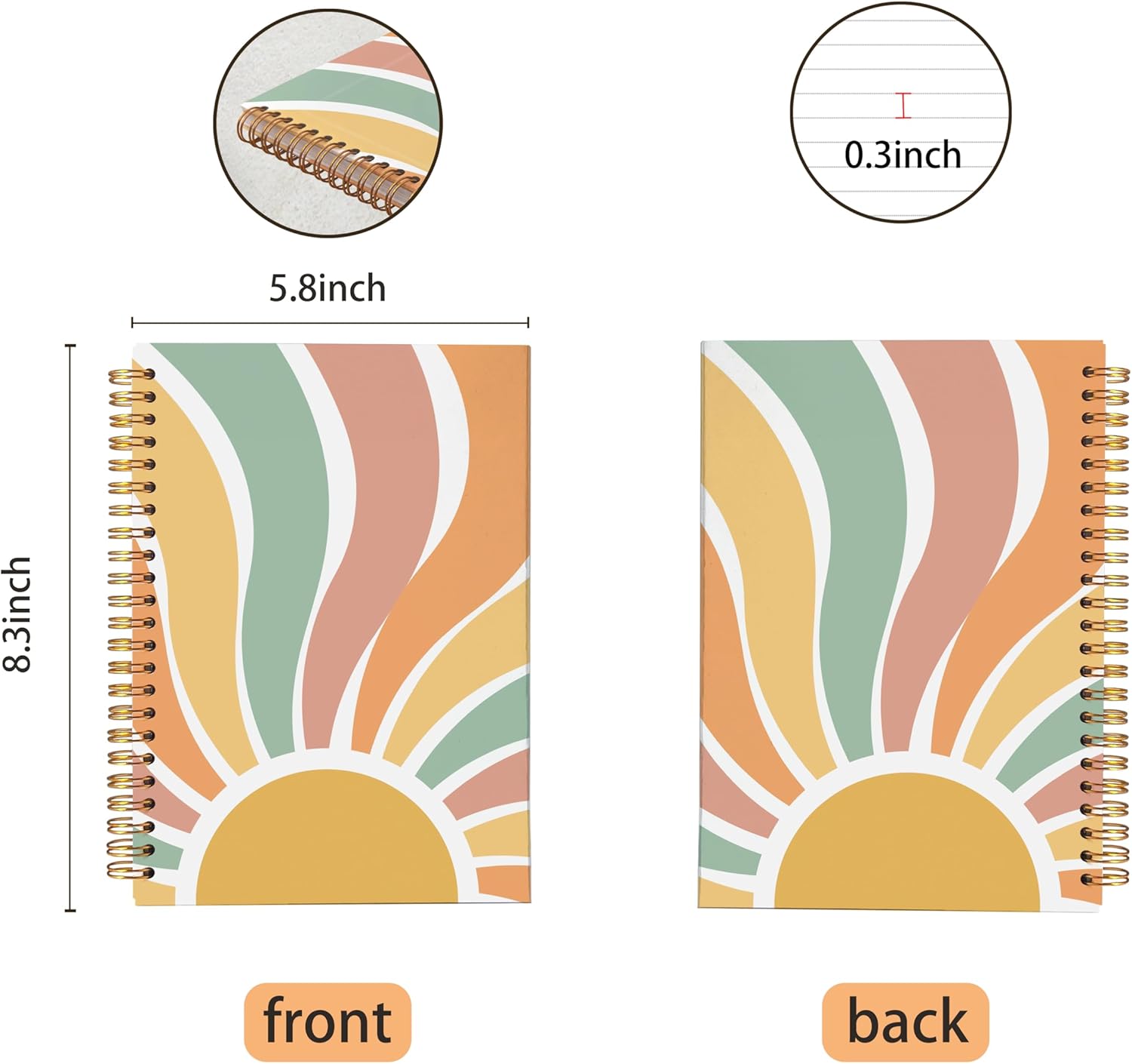 VNWEK Groovy Boho Notebook - Boho Journal, Boho Gifts for Women, Boho Office Supplies, Vintage Boho Sun Sunshine Spiral Notebook 5.5x8.3,Writing Notebooks