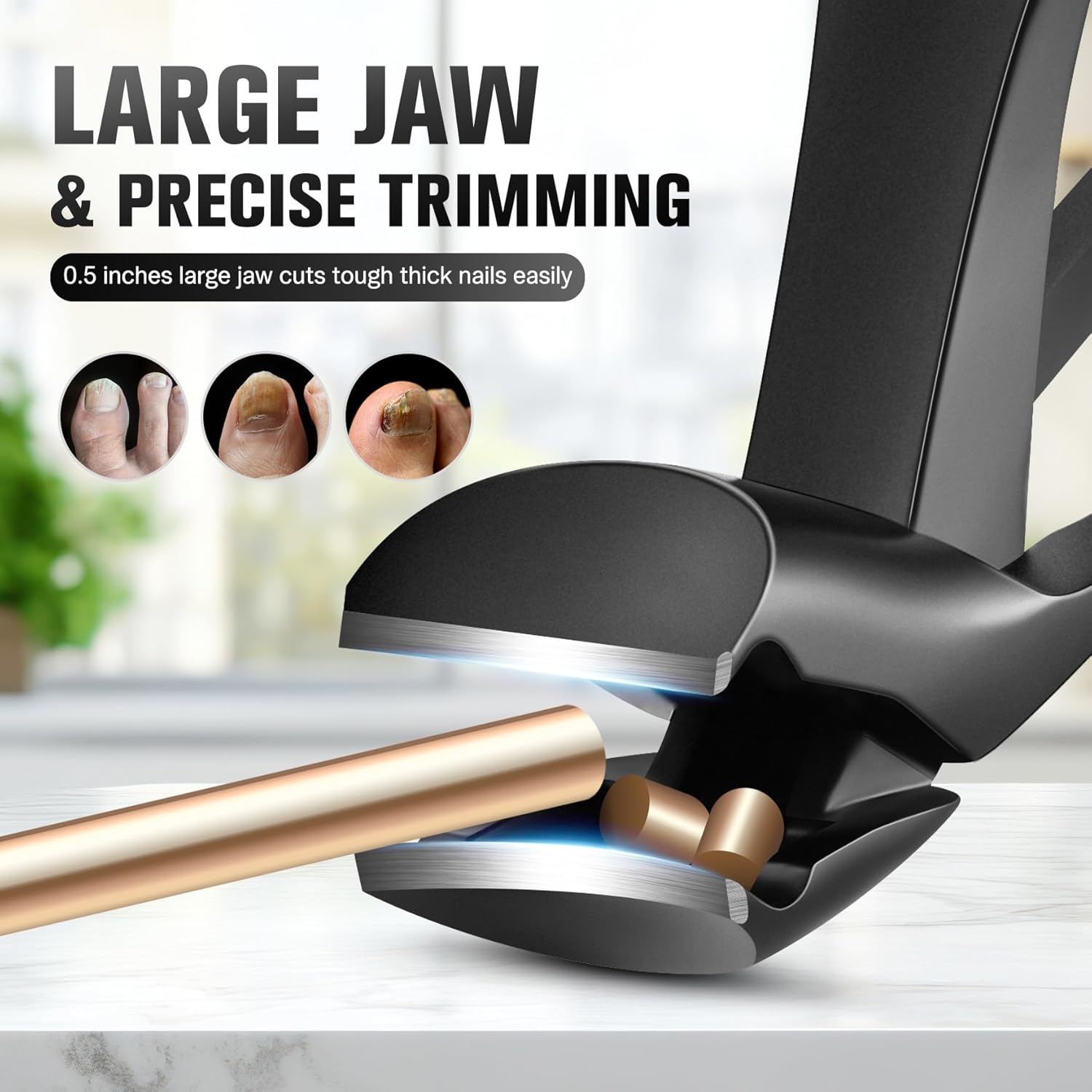 - Trim Thick Nails with Ease: Thick nails? No problem! FERYES Large Wide Jaw toenail clipper boasts an extremely sharp blade, capable of tackling even the thickest nails. The jaw opens up to an impressive 0.5 inches, making it a powerful tool for any nail thickness. Experience a smooth and effortless trimming process, without any discomfort.