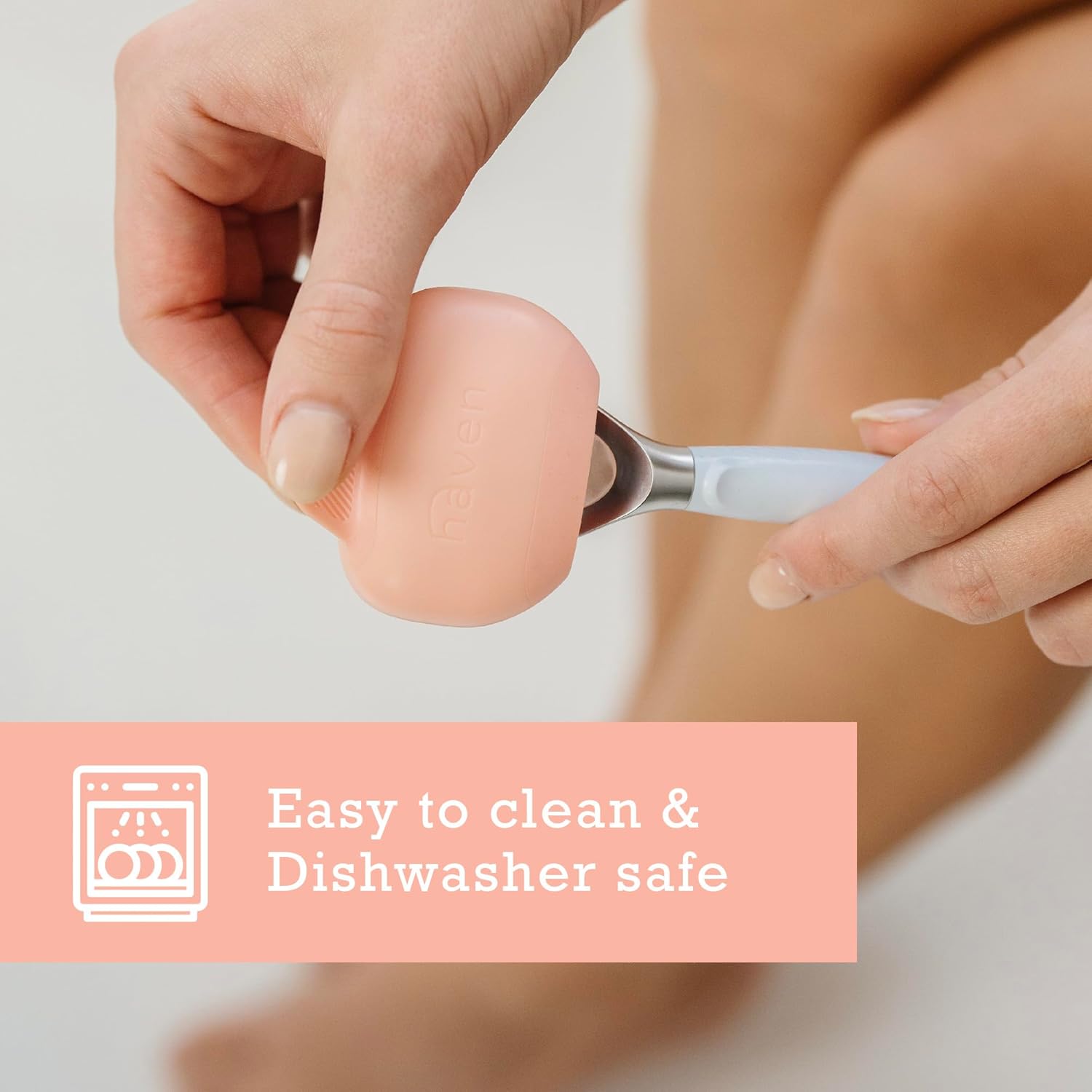 - PACK OF 2 SIMPLE AND EFFECTIVE RAZOR COVERS - Simply snap on the Haven cover directly over your razor head. For larger razors, easily remove the inner plate.