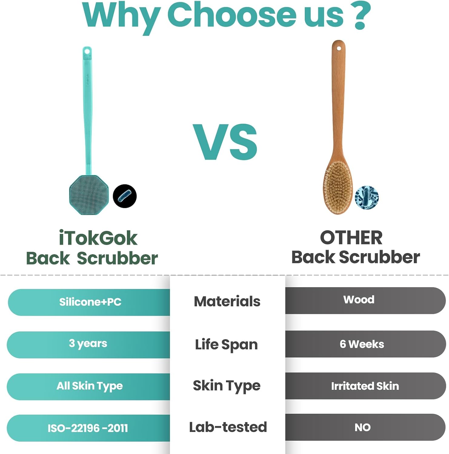 - Lathers Well: iTokGoK Long Handle Silicone Back Scrubber works great with all types of soaps and body washes, Creating a More Lather that Helps to Remove Dirt, Oil, And Dead Skin Cells.
