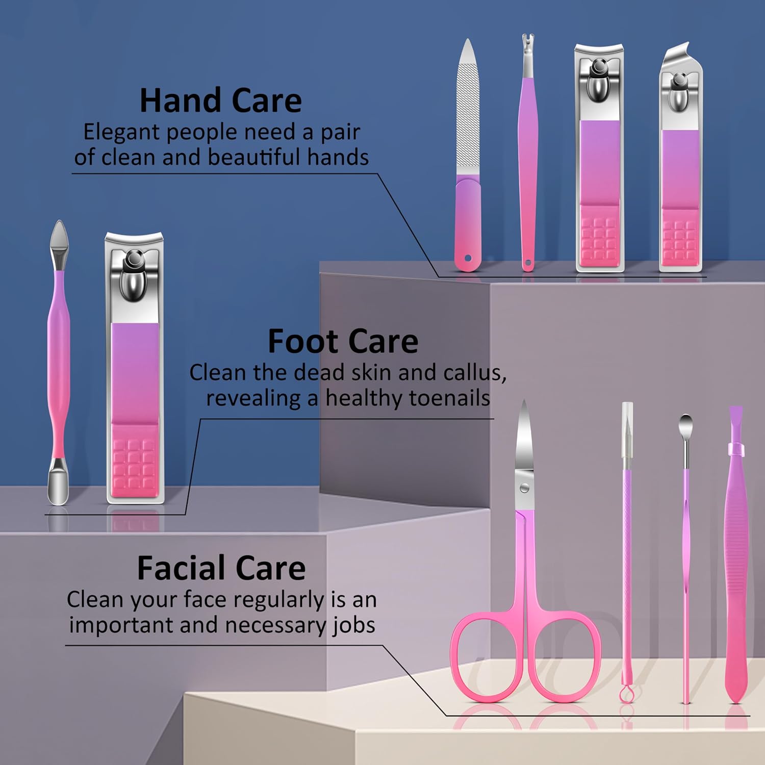 - Manicure Set for Women Men: The manicure pedicure set is available in five colors: black, blue, rose gold, green, gradient pink and purple. This leather manicure kit is the perfect gift for Valentine’s Day, Thanksgiving Day, Christmas Day, Birthday and important anniversary for family and friends.