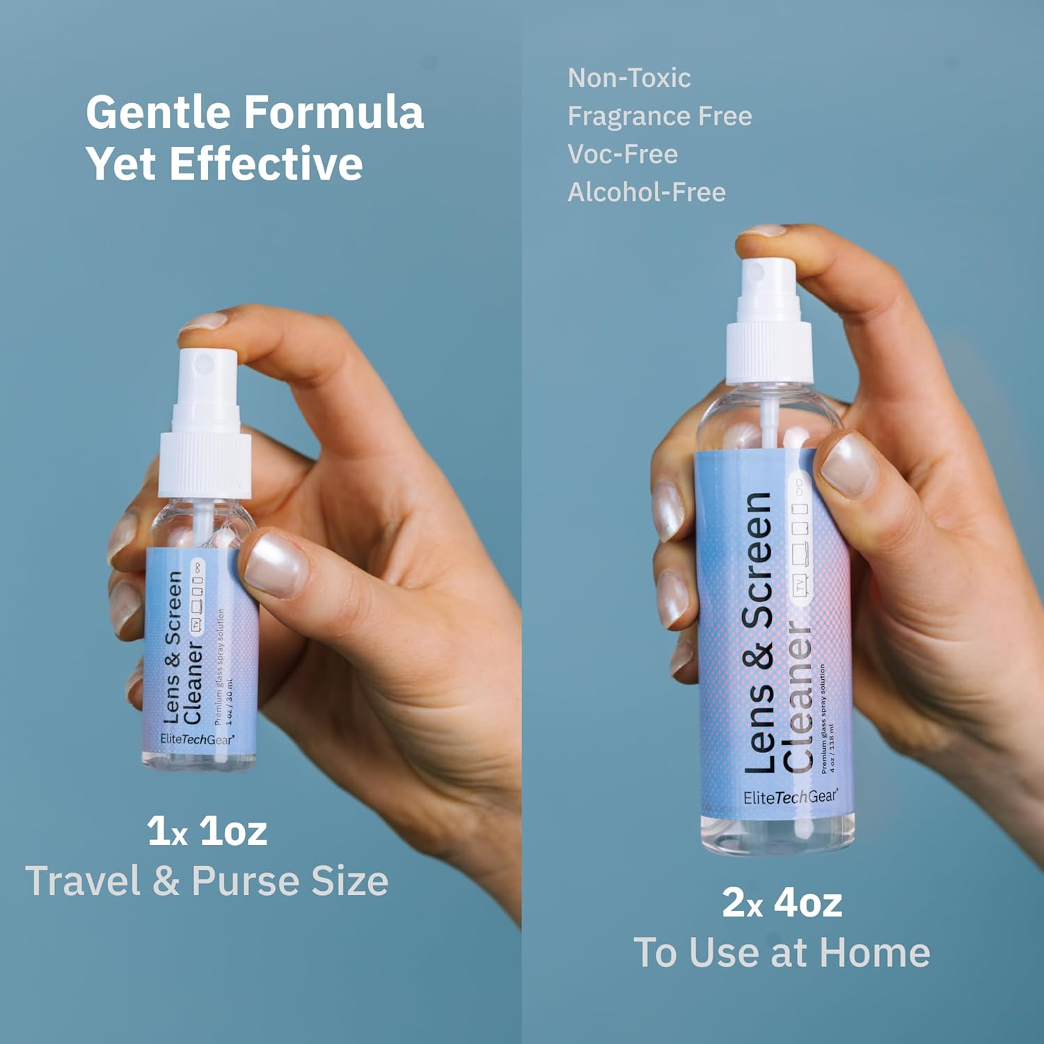 Elite Tech Gear Optical, Screen & Lens Care Kit - 3pc Spray (2x4oz+1oz) with 2 Microfiber Cloths - Alcohol-Free Eyewear Solution - 5pc Glasses Cleaner