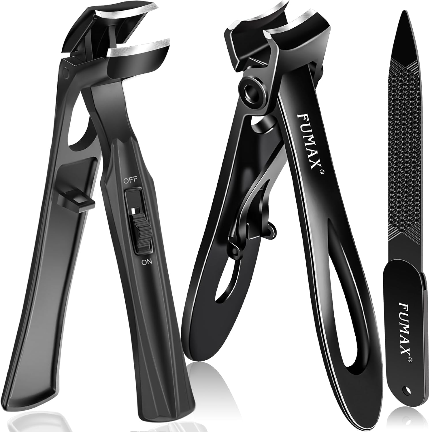 - NAIL CLIPPER SET - A complete and thoughtful nail clippers set meets the needs of daily nail care: 1x Toenail Clippers for Thick Toenails, 1x Angled Nail Clippers for Seniors, 1x Stainless Steel Nail File. Made of premium stainless steel and exquisite craftsmanship, sharp nail clippers are sturdy and long-lasting. Large nail clippers are very suitable for seniors, men, women, adult, teen, special for elderly with thick toenails and pregnant women with limited mobility.