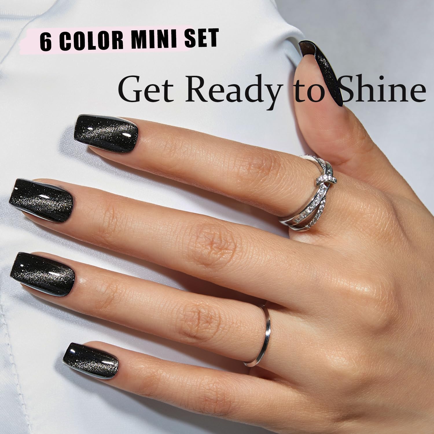 modelones Cat Eye Nail Polish Set, 6 Colors Magnet Dark Red Black Pink Shimmer Glitter Quick Dry Nail Polish Set Bulk Manicure Diy Nail Art Salon Home Gift for Women Girl