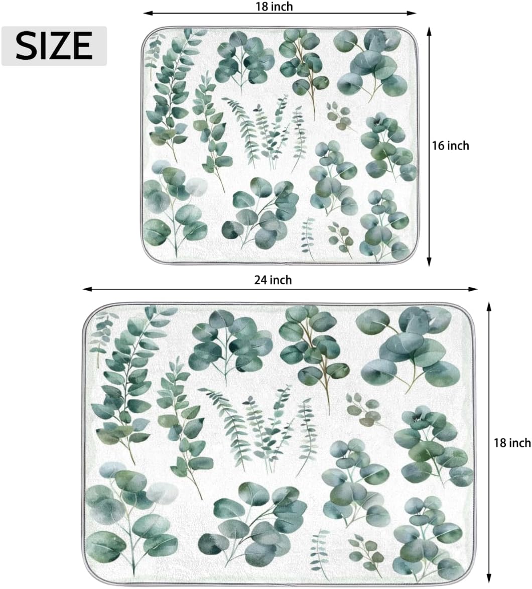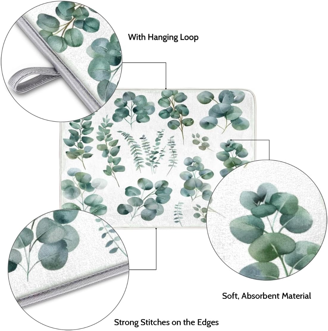 Hexteria Dish Drying Mat for Kitchen Counter Dish Mat Pad Absorbent Microfiber Kitchen Drying Mat Dish Drainer Rack Mat, 16x18 Inch, Eucalyptus Leaves